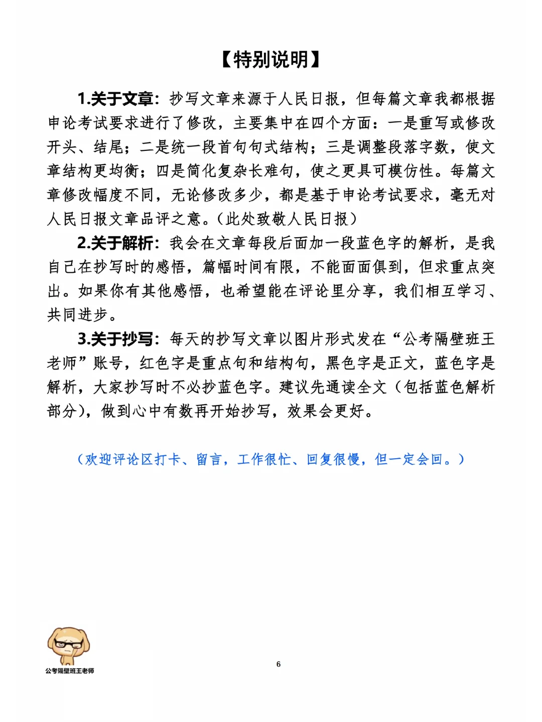 这里是公考隔壁班王老师独创的“每天半小时・申论80分”抄写团,欢迎加入我们!