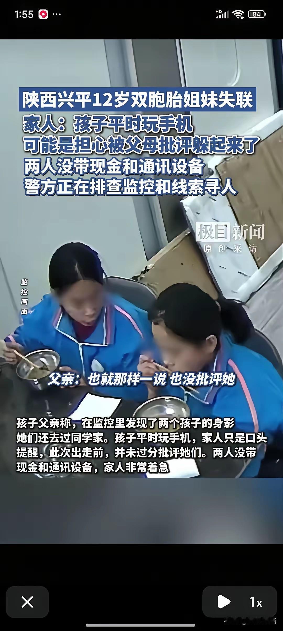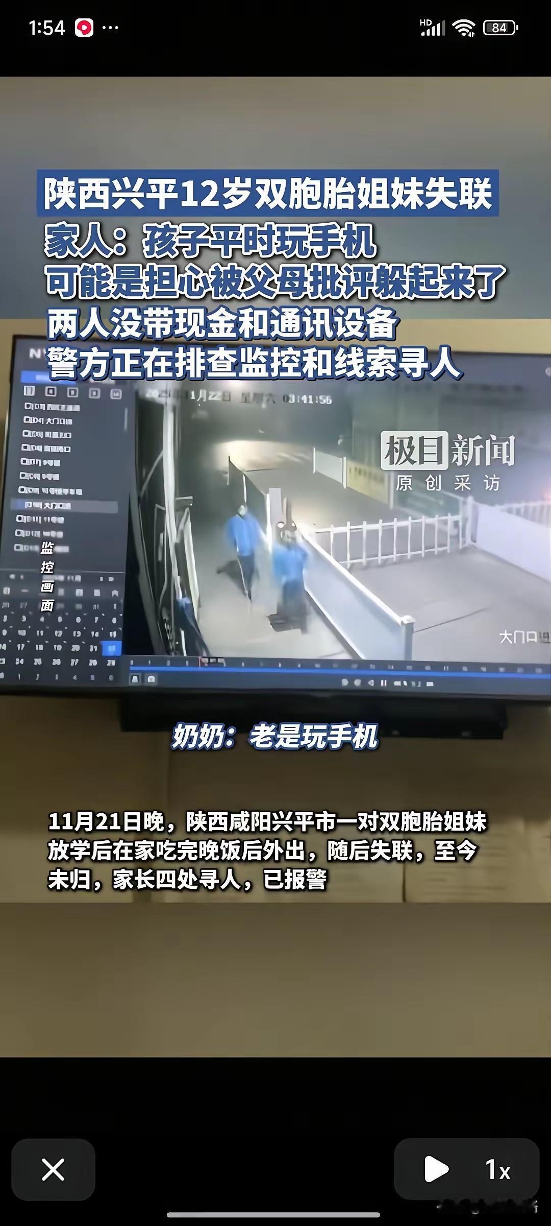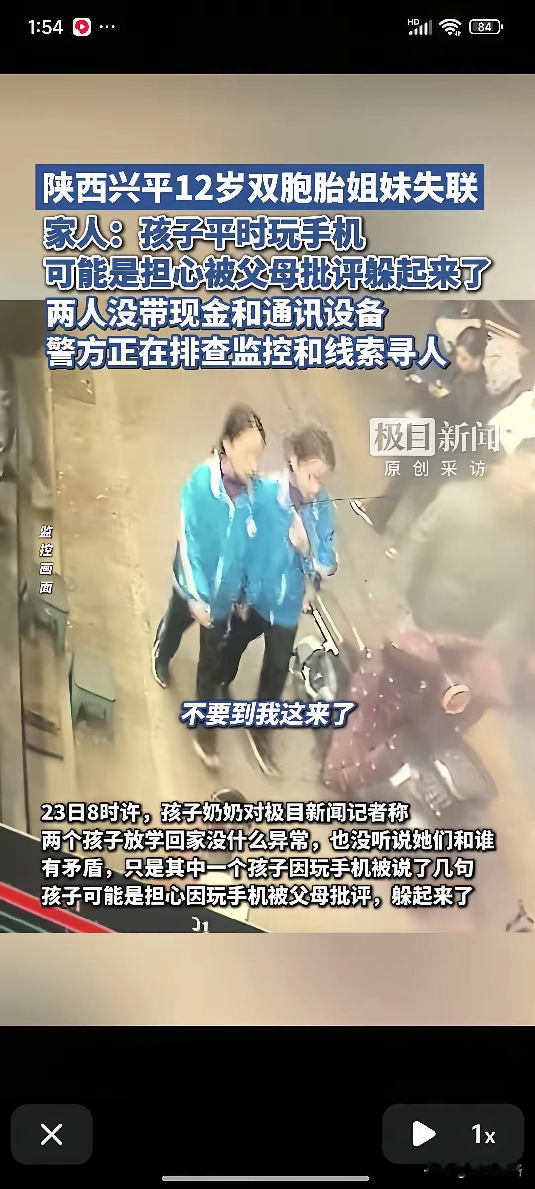 因为奶奶一句话,双胞胎姐妹被骂玩手机就离开家,手机成了原罪,青春期孩子离家出走,到底是谁的错? 2025年11月21号,陕西兴平,一对12岁的双胞胎姐妹在奶奶家吃完晚饭后就离开了,到现在还没有回来,她们没有带手机和钱,离开奶奶家后就去了同学家玩,怀疑是在别的小区楼道里面过夜。 事情的原因,奶奶因为其中的一个女孩玩手机,就说了句再玩手机就回你妈妈那边去,别来我这儿。 父亲表示两个姐妹可能是怕父母知道她们玩手机的事情回家会被骂,但是,实际上平时他们并没有过多的阻止孩子玩手机,只是看到的时候会说一下。 12岁正值青春期,孩子渴望独立,但又没有胆量去反抗自己的父母,可能存在平时积累的一些矛盾和情绪。 爸爸听到奶奶说两个姐妹没有回来后马上就报了警,警察也马上调看了附近路上的监控,父母也在到处的寻找。 这个事情经过媒体报道后,很多附近的人都会帮忙留意。 现在青春期孩子的心理,12岁左右的孩子正值青春期,渴望有自己思想和行为上独立,但又依赖家人的温暖,想倾诉自己心事,但是又怕被父母不同意又要说教,就想着离家出走,现在很多孩子的冲动往往就源于说了没人懂的委屈或者被控制的窒息感。