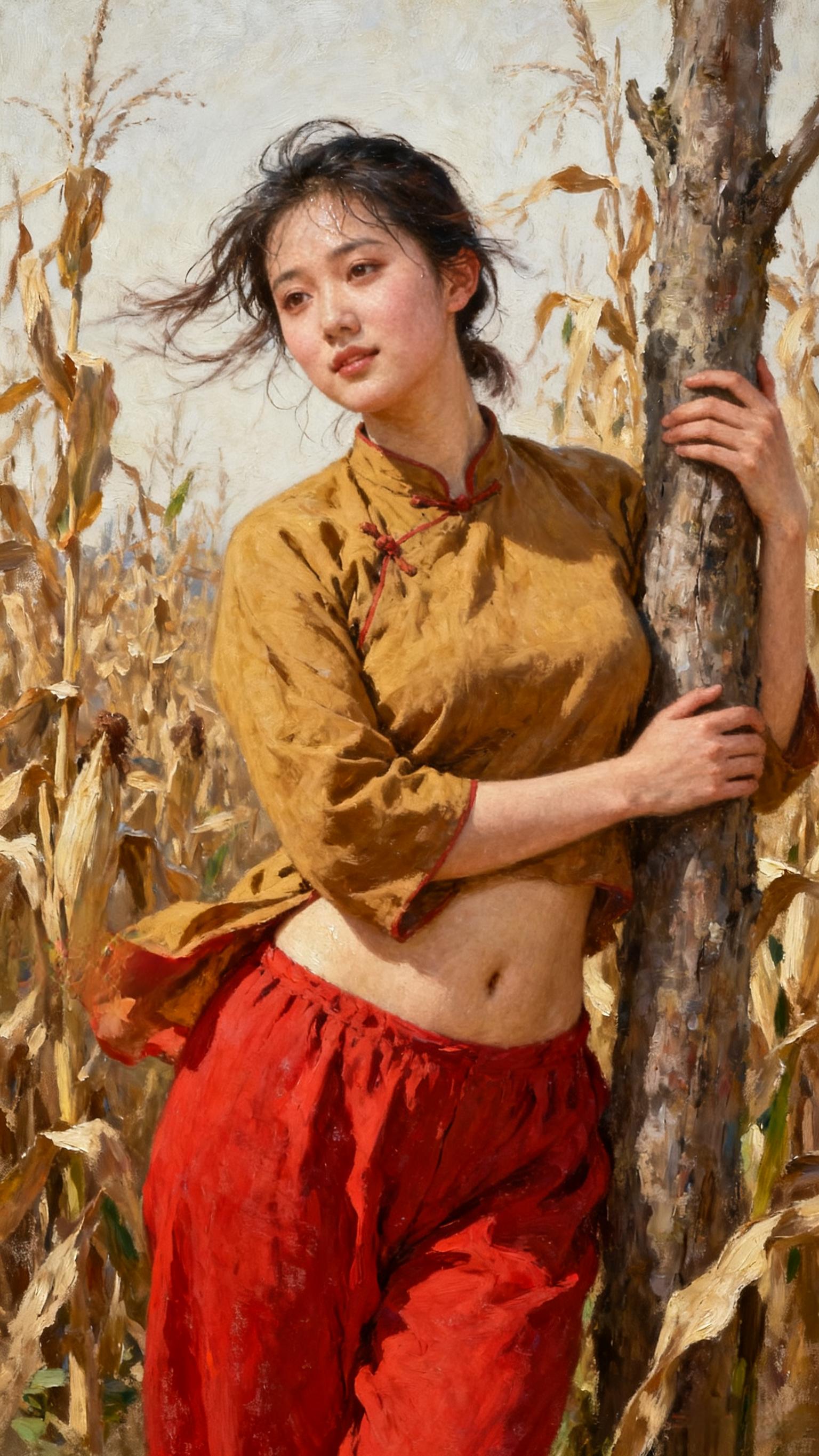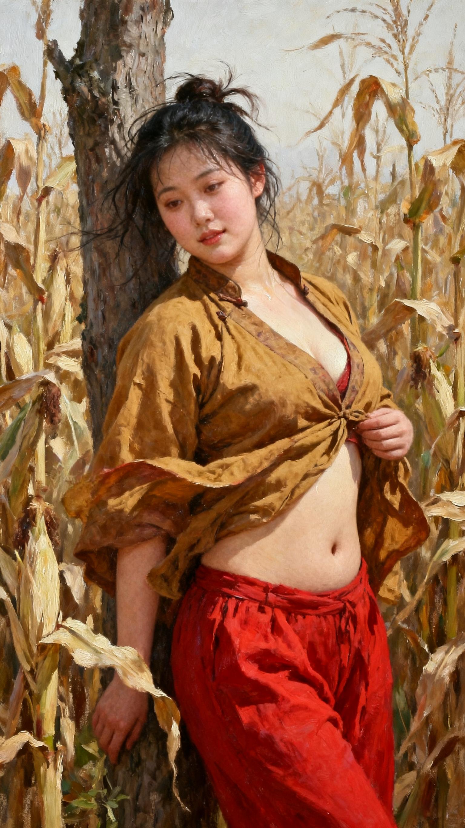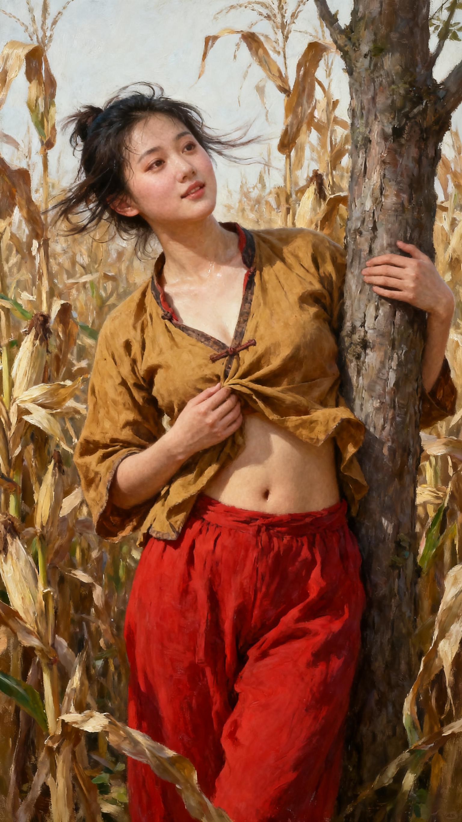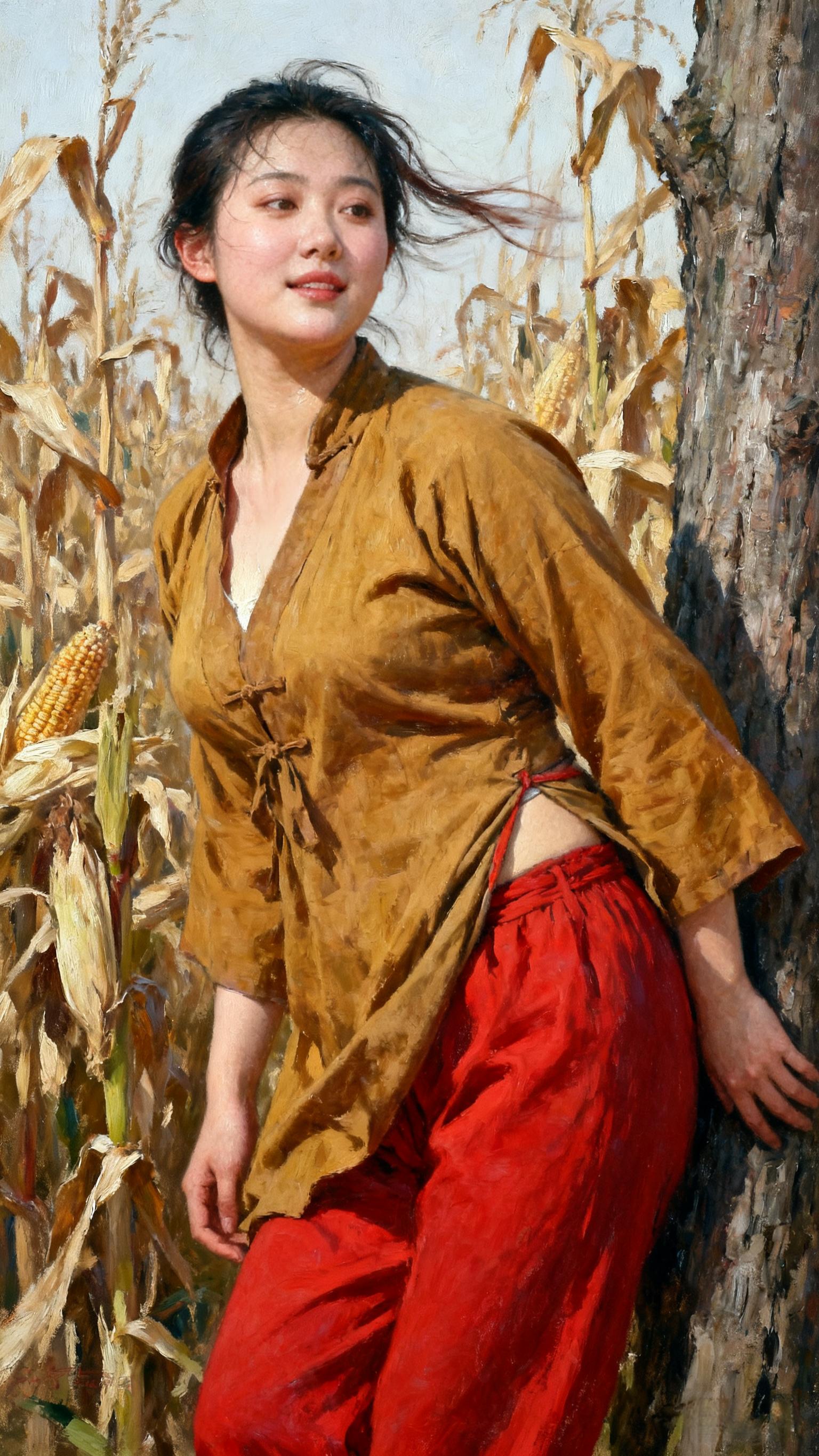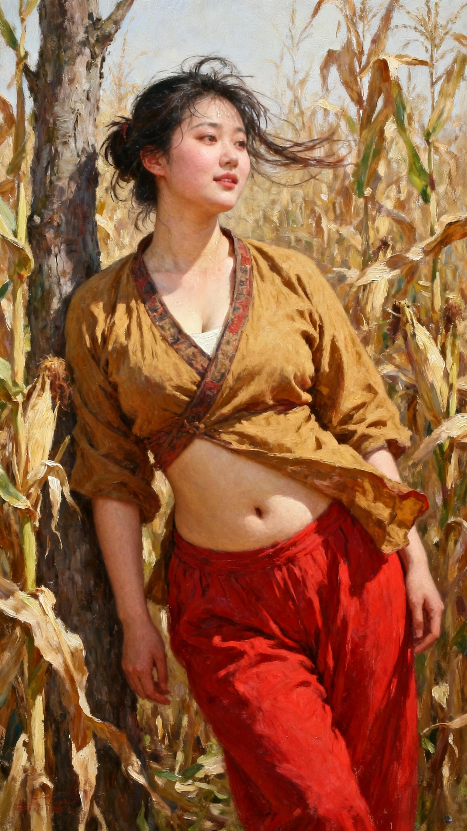 落日余晖映晚霞一抹夕阳美如画 复古穿搭 油画艺术