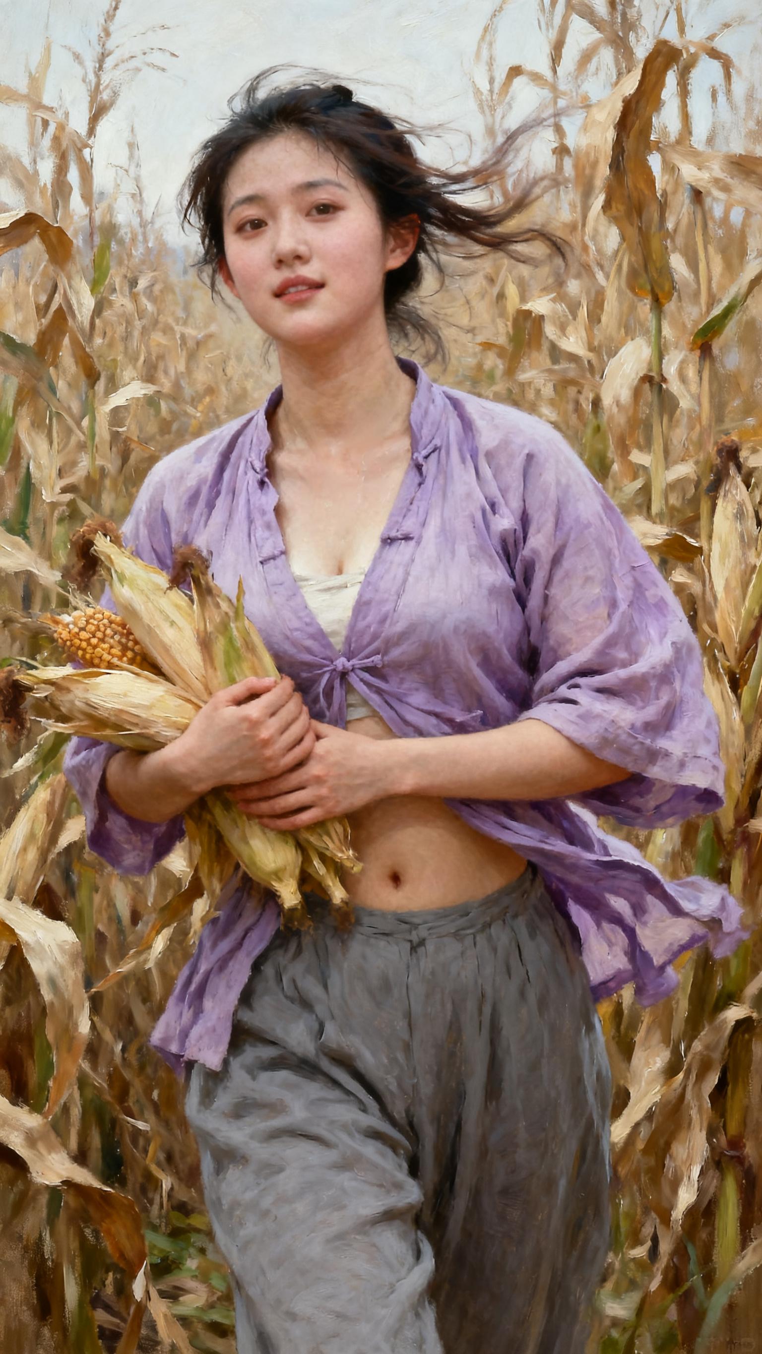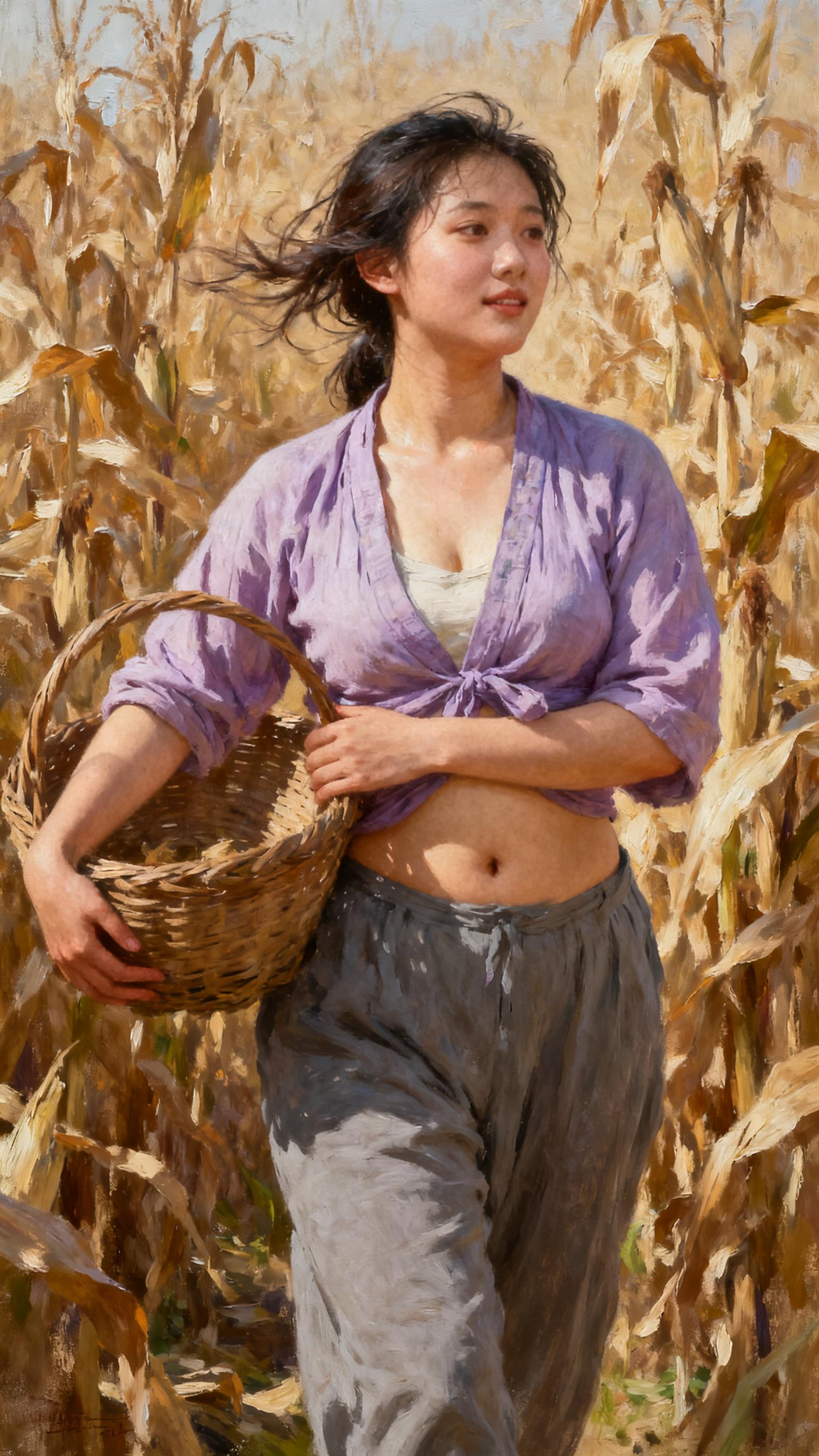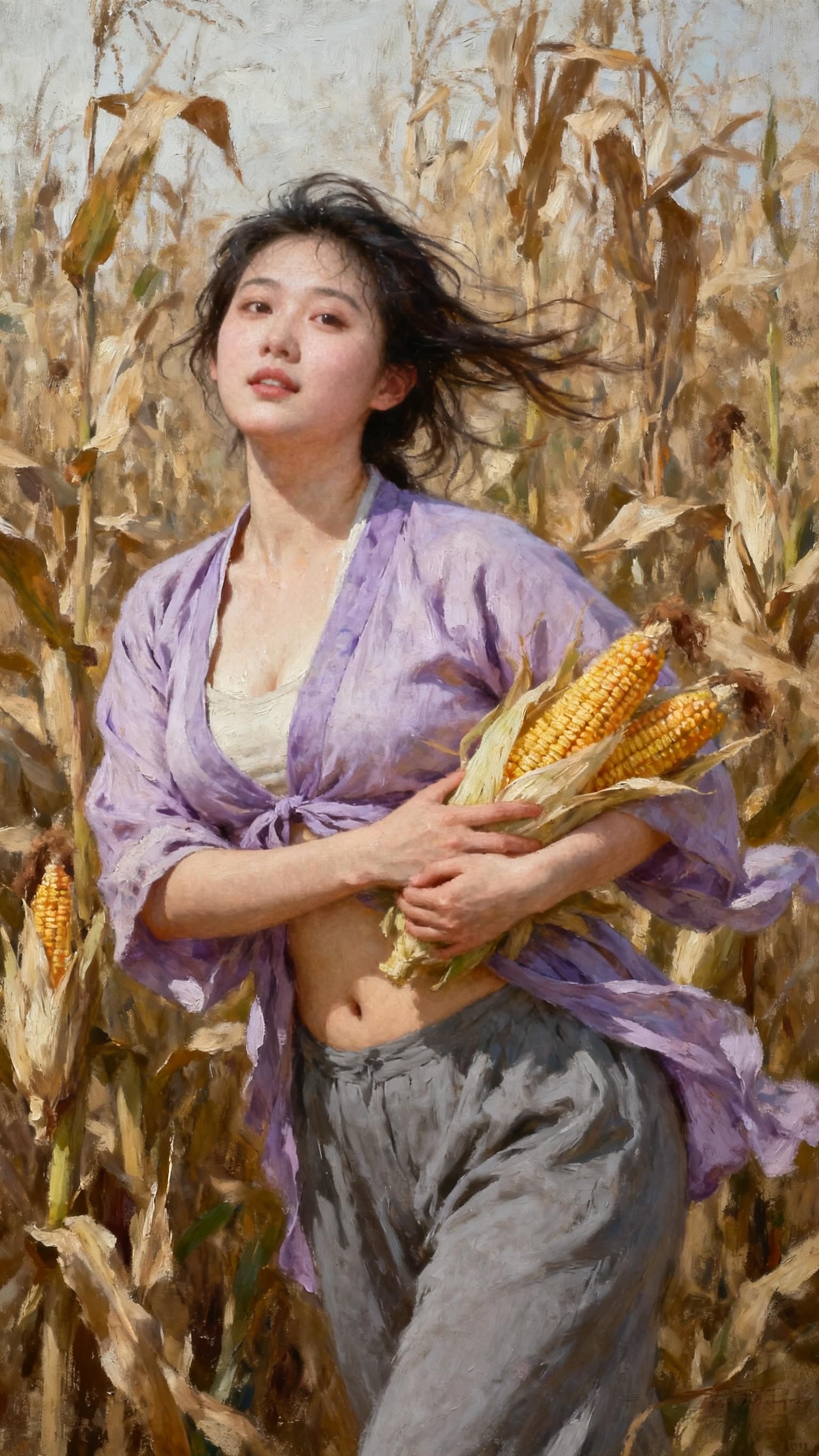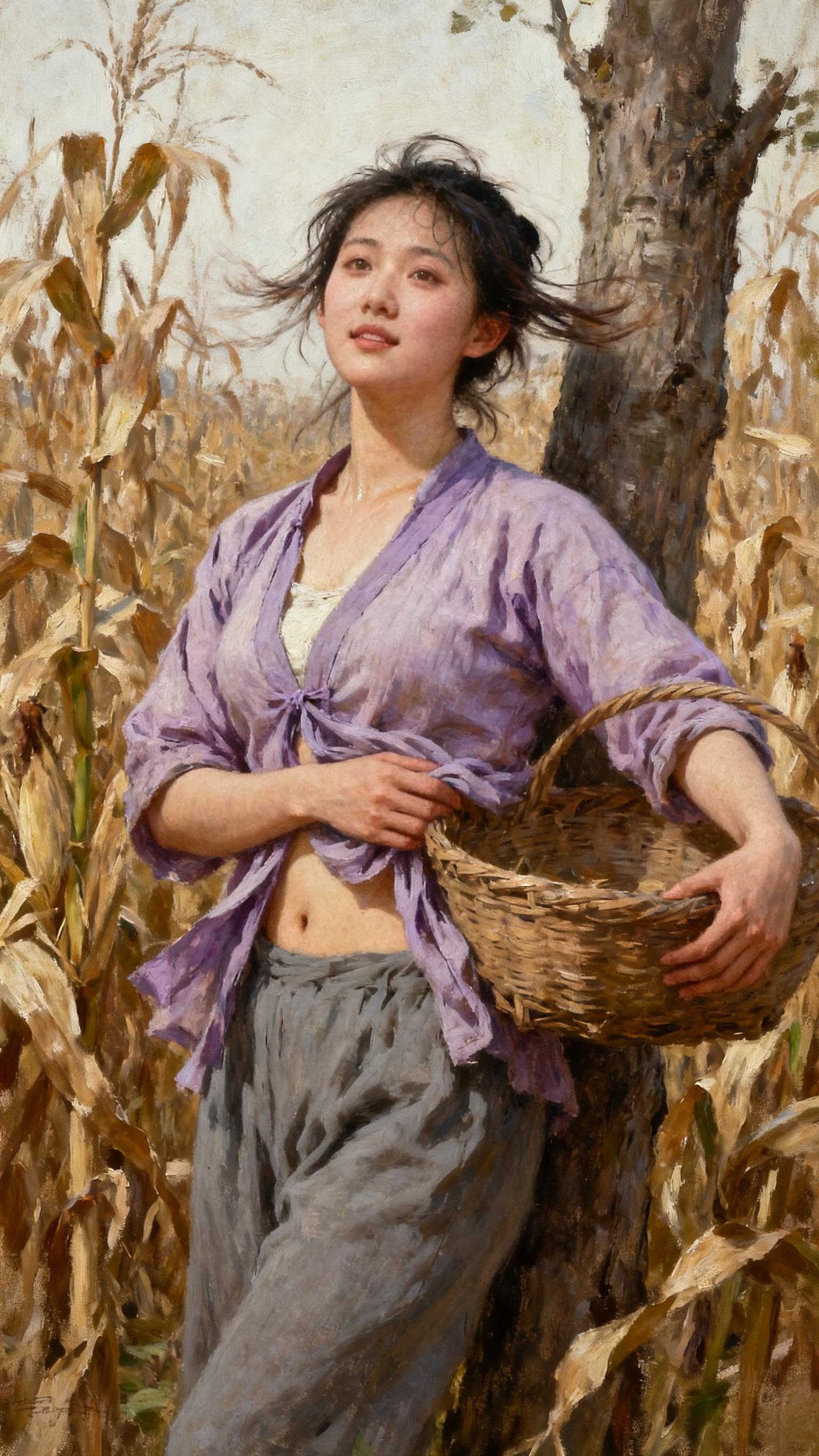 落日余晖映晚霞一抹夕阳美如画 复古穿搭 油画艺术