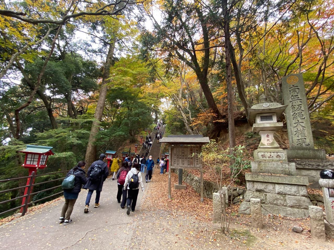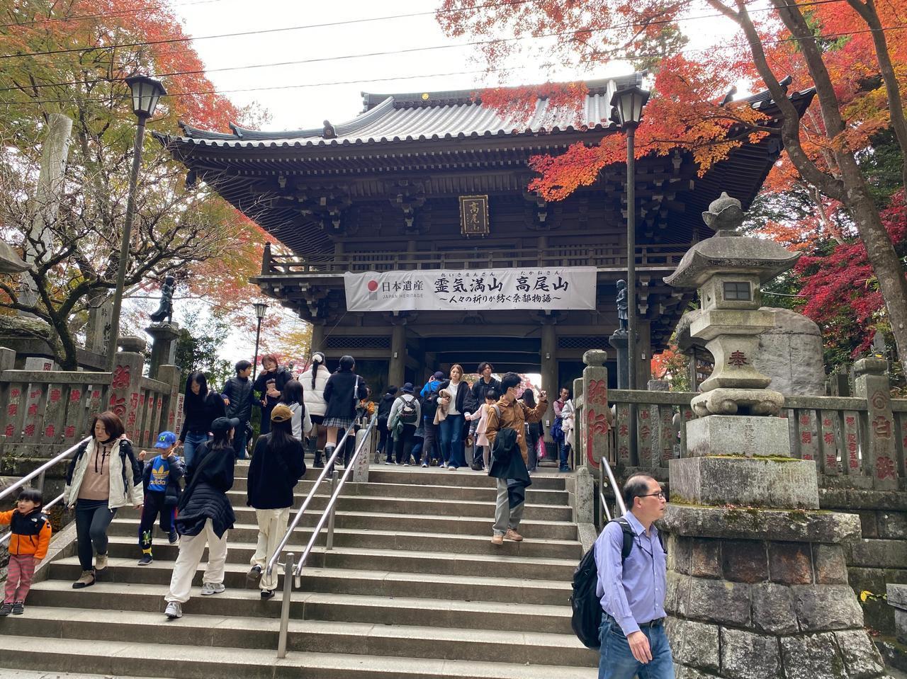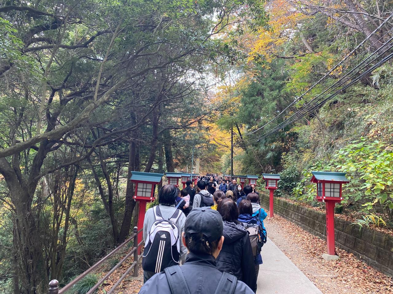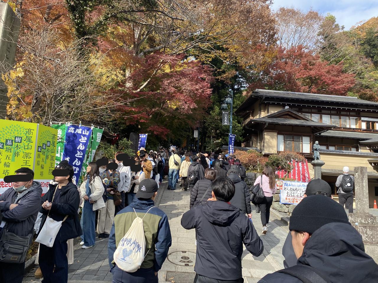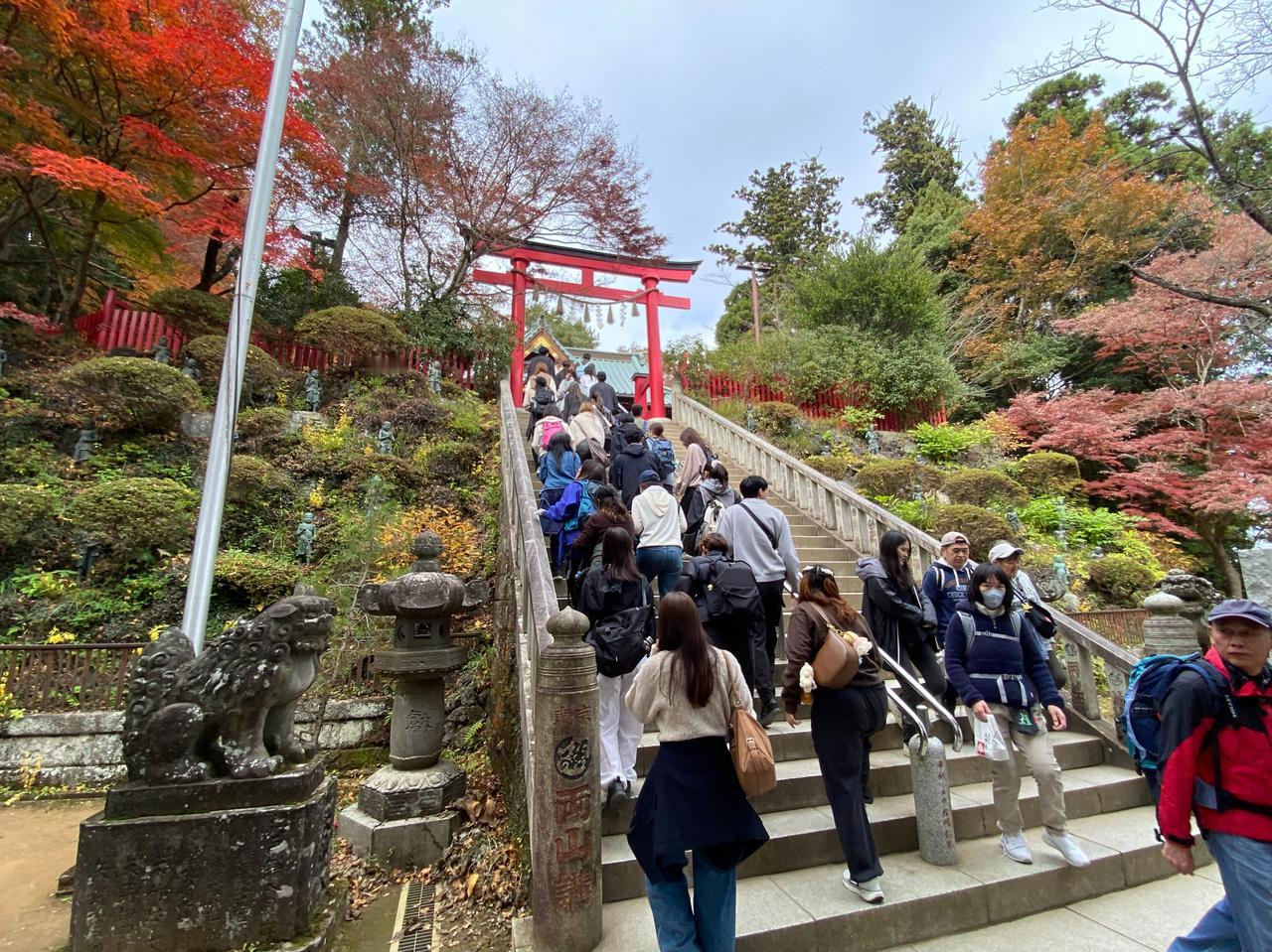 11月23日(周日)三连休的第二天。 一直听东京同事说,以前学校的春游经常组织去的地方就是东京都内八王子是的高尾山,趁三连休天气不错,就去了高尾山[可爱] ***先说游完后的感受: 1.     周末、节日不宜,人太多。 2.     山上没有网络信号。 3.     厕所太少,接近山顶有比较大的厕所。 4.     人多,吃饭的地方少,没见到山上有便利店,建议随身备巧克力之类的东西。 5.     因为人多时,电子支付信号不通,建议随身备现钞。 当坐京王线到高尾山口终点,看到7/11门口排大队,就觉得有点不妙[捂脸]随着人流开始进山后,看到登山缆车排着望不到尽头的队,就直接放弃了,开始徒步登山[笑哭] 途中听后面的日本人聊天,说今年的人比去年多。等到达途中缆车的终点站时,就知道刚才爬上来的距离是毫无意义的,绝对是应该坐缆车的,但今天是无法选择的[衰]看缆车终点的提示板:坐缆车上山后,登顶的时间预估是45分钟[呲牙] 从缆车终点开始登山可能是登高尾山的真正意义,总的感觉高尾山更像个祈求去除厄运、祈求好运的地方[谢谢][撒花] 作为东京都内的一个比较有名的地方,值得一游[赞]就是有点远。在这个三连休,在没坐缆车的情况下,爬山单程要2个多小时左右,蛮辛苦的[憨笑]