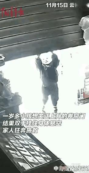 吓死人了!卷帘门升起来的时候,一岁多的男孩儿正用双手紧紧抓着卷帘门的底边,随着卷帘门越升越高,男孩儿也跟着升起来,身体悬在了半空,吓得哇哇大哭!就在卷帘门快要升到顶的时候,家人听到了孩子的哭声,迅速跑过来,救下了孩子! 这要是没人发现,孩子悬空时间一长,坚持不住肯定得掉下来,会不会摔坏啊? 提醒大人一下,看护孩子可不能掉以轻心,否则,出了事,悔之晚矣!