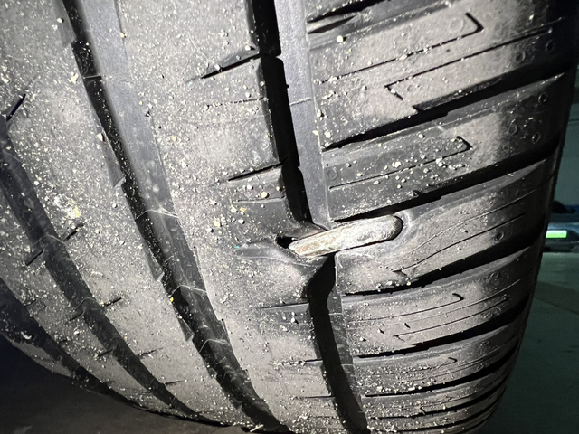 小米su7扎心了 刚买没几天出去溜达我以为是下雨天道路脏乱扎到的钉子,路上都没有提示,回到停车场准备停车才提示胎压异常,检查一圈停车场,服了,到处钉子,想问懂行的师傅这种是要换胎还是补胎就行了