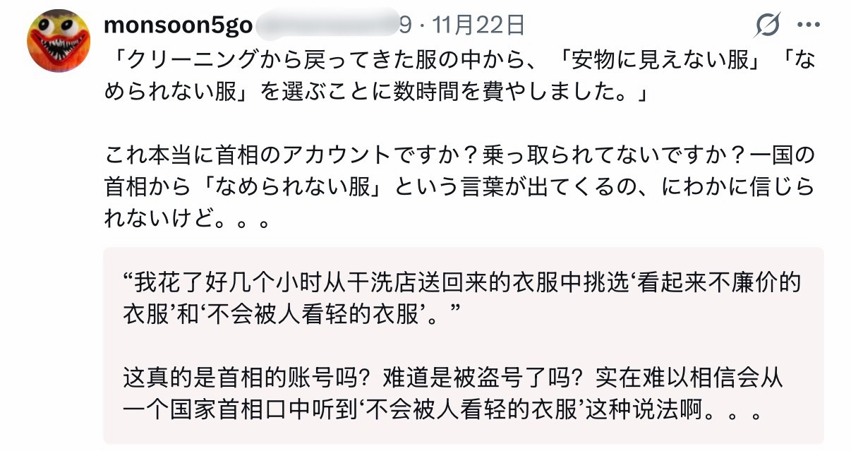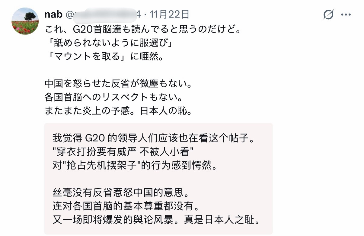 🔻网友分享,对于高市早苗的表现,日本人确实是骂声如潮。🔻在高市早苗本人的账号下面形成了评论(水军吹嘘)转发(各种批评)两重天的景象。