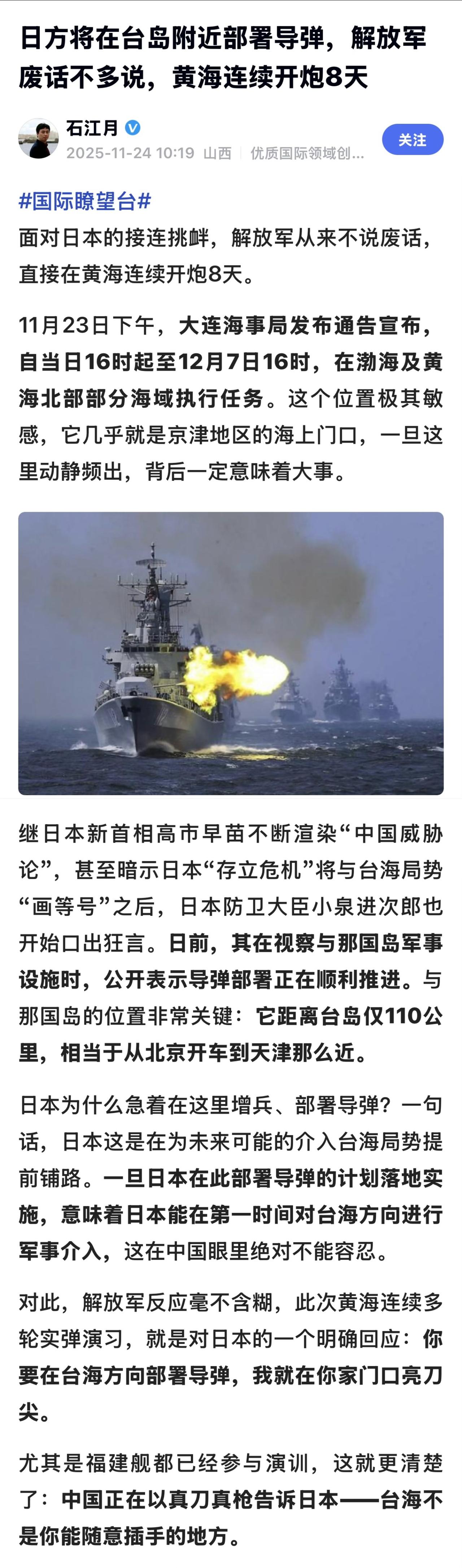 日本防卫大臣小泉进次郎近日视察了距离台湾约110公里的与那国岛军事基地,并表示当地的导弹部署计划“进展顺利”。他声称此举是为了加强防御,否认会加剧地区紧张局势。该部署是日本强化其南部岛链更大规模军事强化的一部分。