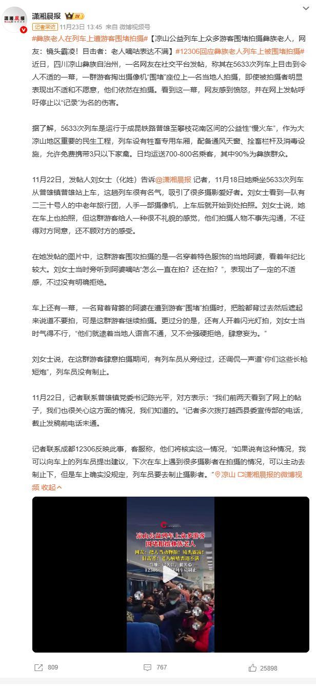 列车员途经时的调侃“长枪短炮”,12306“无规定可依”的回应,暴露的不仅是管理缺位,更是对基本共情的漠视。当《民法典》明确肖像权保护,当“镜头礼仪”倡议被反复呼吁,文明旅游的底线,不该由被拍摄者的眼泪来划定。