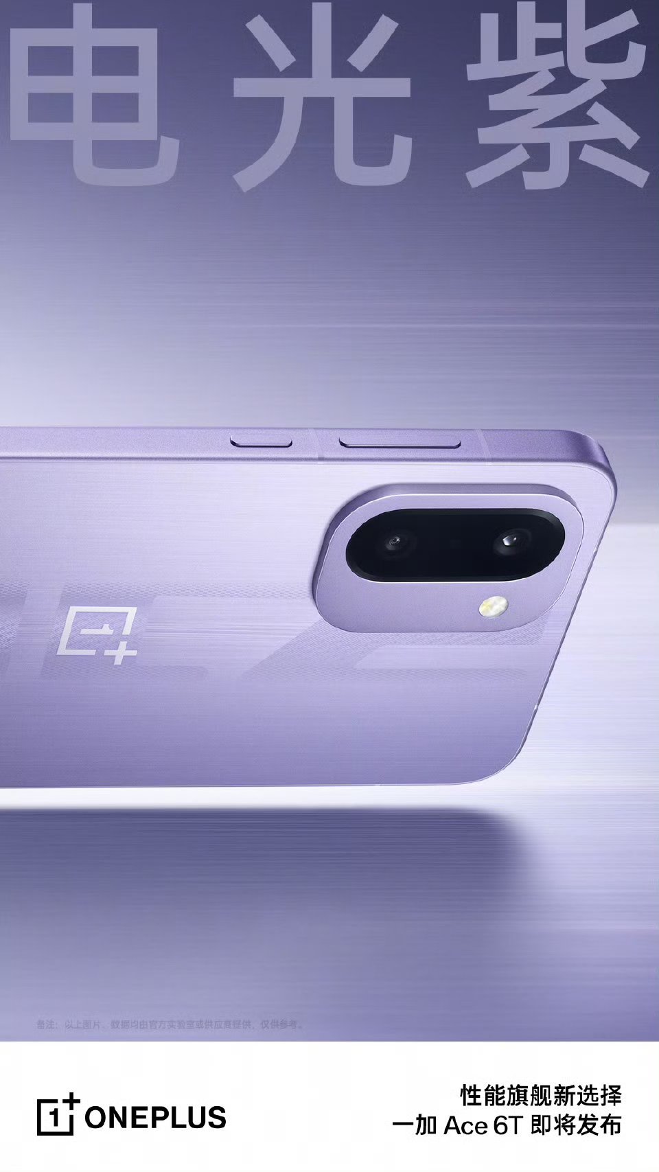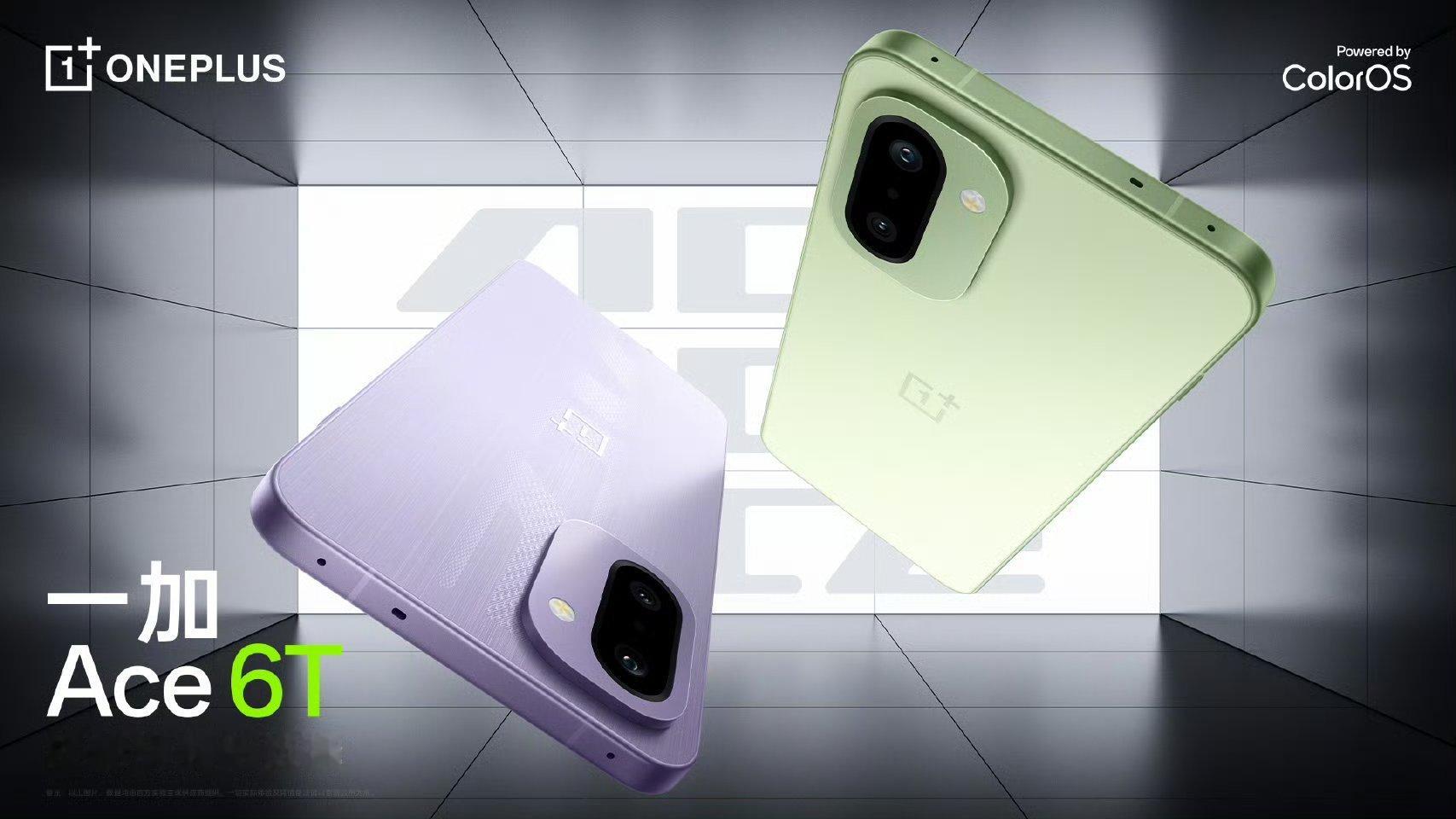 【一加 Ace 6T 手机三款配色公布:165Hz 高刷屏,全球首发第五代骁龙 8】一加 Ace 6T 手机公布了三款机身外观配色,分别为「闪速黑」、「掠影绿」、「电光紫」,全部采用低饱和度的哑光设计,不易沾染指纹。新机整体设计语言与一加 15 旗舰机型保持了高度一致,不过二者在细节上仍存在一些微小差异,一加 Ace 6T 背部少了一个摄像头开孔。一加 Ace 6T 全球首发高通第五代骁龙 8 芯片,写入新一代「风驰游戏内核」;电池容量 8 开头,还兼具 100W 闪充。该机还支持 165Hz 屏幕高刷,标配 IP66、IP68、IP69、IP69K 满级防尘防水,标配 3D 超声波指纹,全新「冰河散热系统」搭载一加最大散热面积,标配旁路供电,标配一加 15 同款的陀螺仪。一加 Ace 6T 还有一个原神神里绫华定制机,外观将在后续公布。