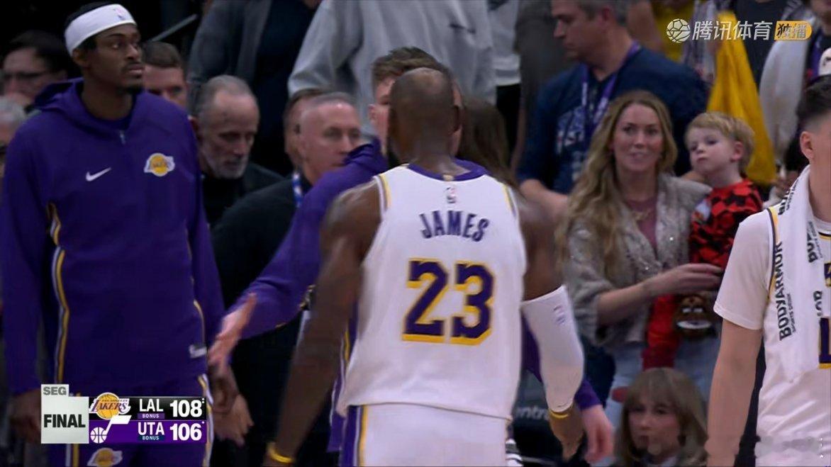 湖人对阵爵士的比赛中发生了令人感动的一幕!詹姆斯打了五分多钟就被雷迪克换下去休