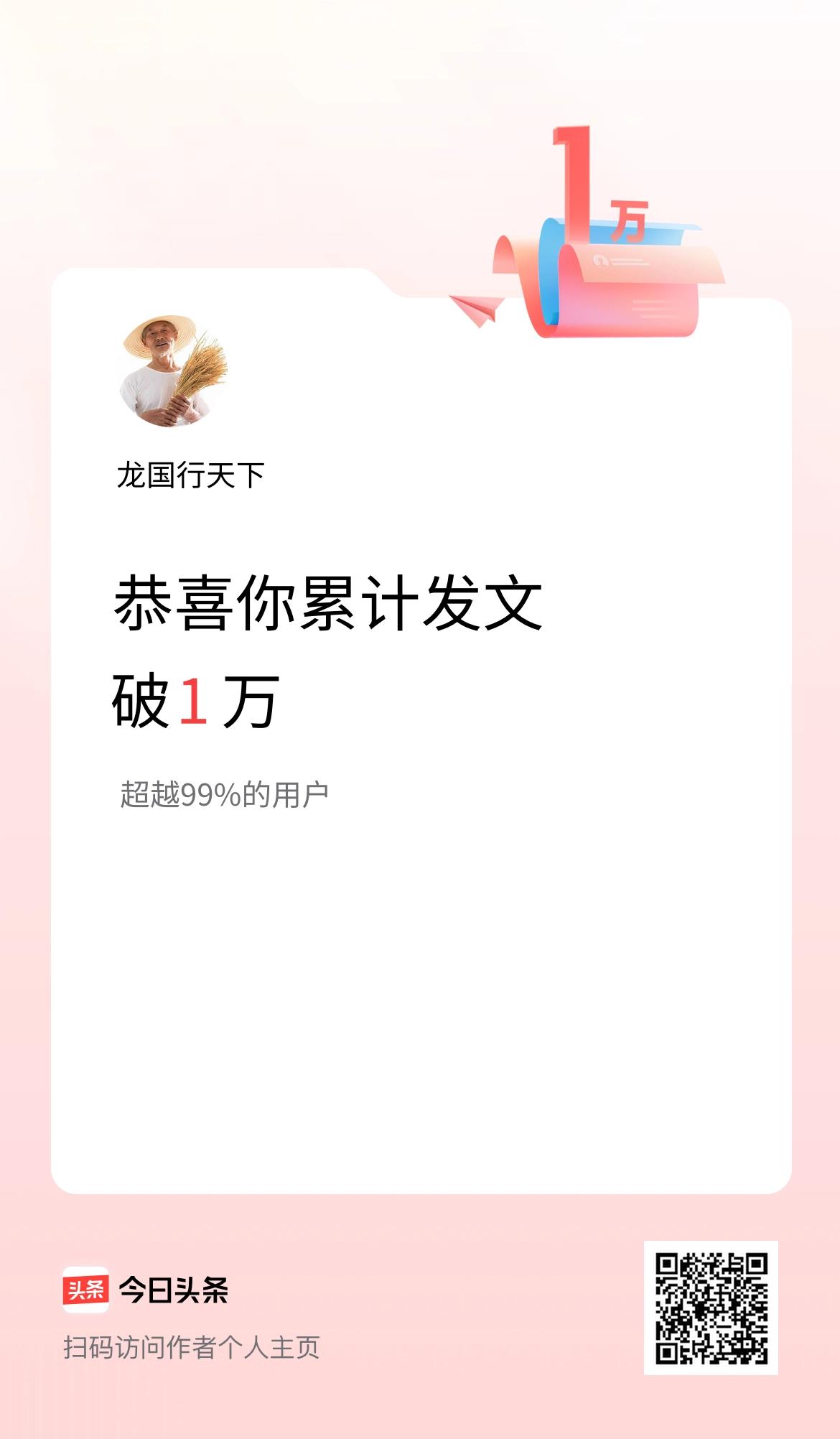 我在头条累计发布内容破1万啦!