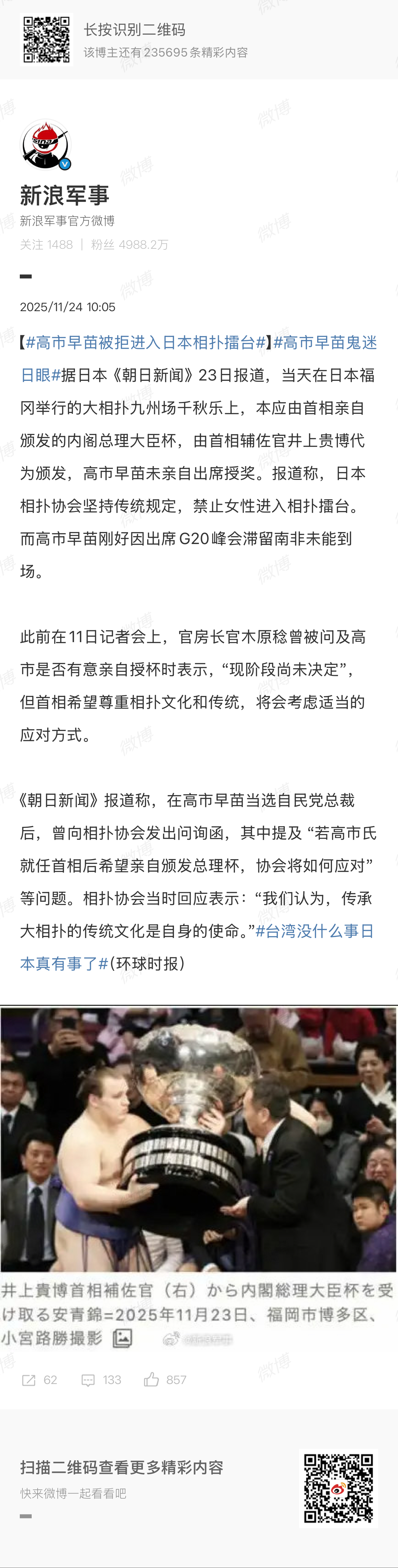 🔻有网友问“高市早苗说能给日本在外交谈判中带来优势的衣服是什么?”🔻不知道啊