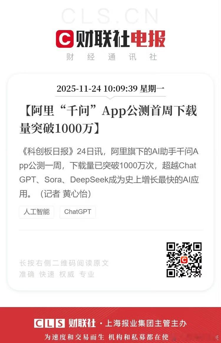 千问APP公测首周下载量突破1000万。锐锐也是上手玩了几天,说句中肯的:确实有