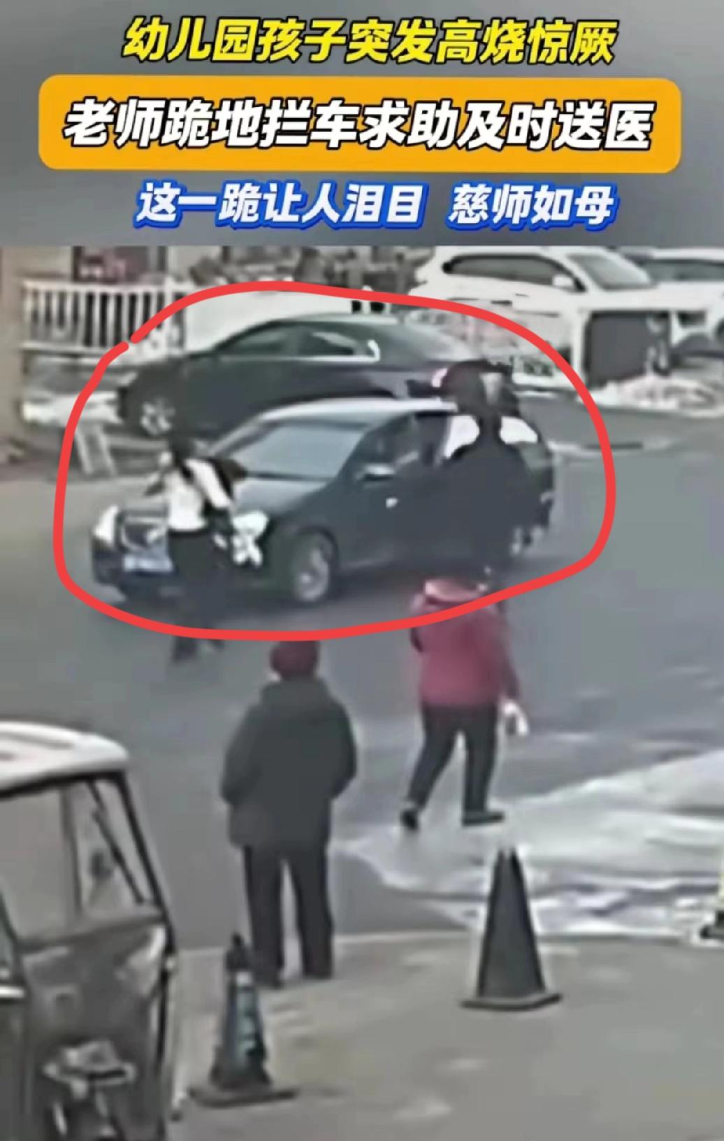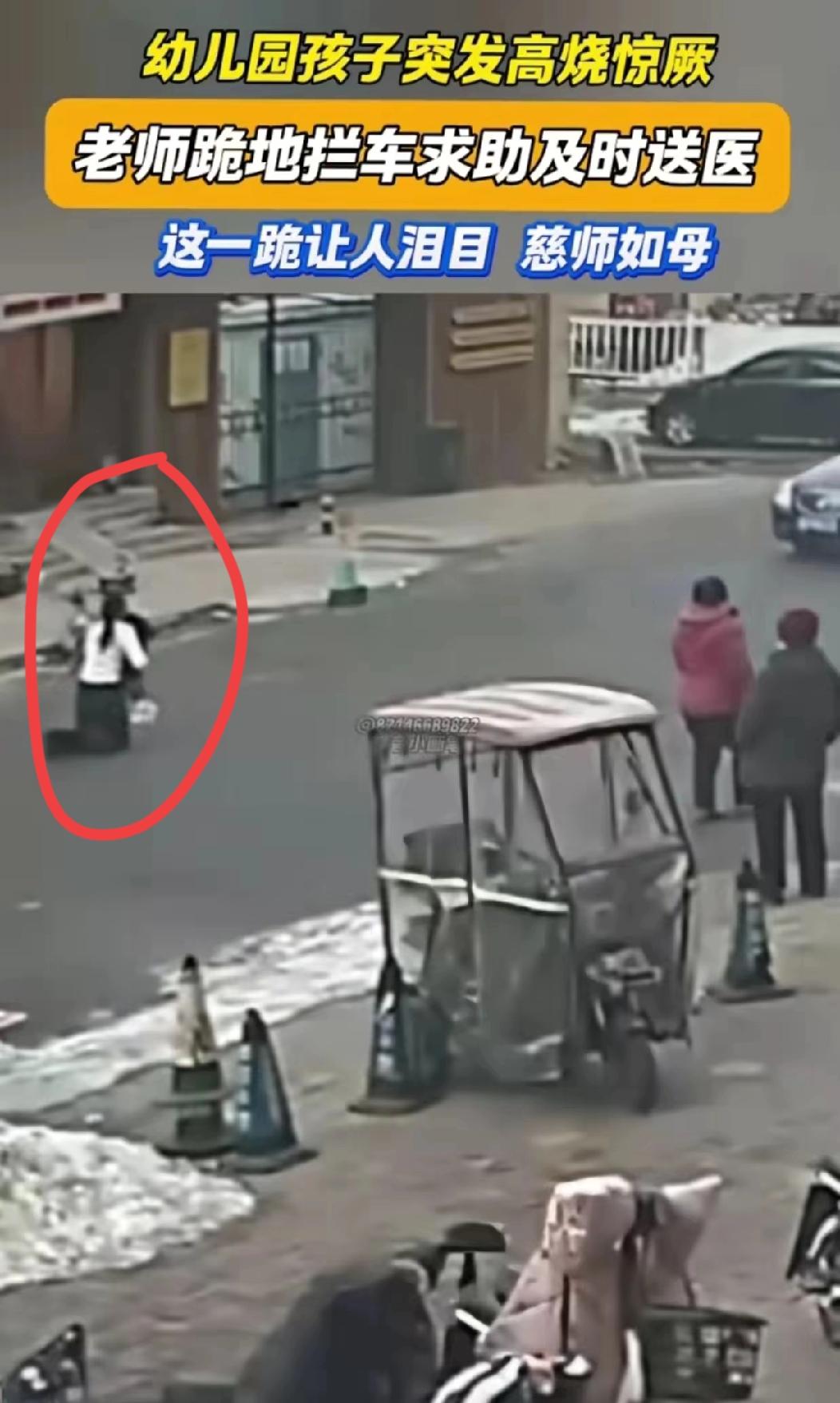 最美老师!!!! 街头这一跪,是老师刻在骨子里的本能——当孩子突发高烧惊厥,她顾不上冰冷的路面,屈膝拦车的瞬间,把“师者如母”写得滚烫。万幸及时送医,这一跪里的焦灼与柔软,是最动人的守护。 教室的小椅子还歪着,刚搭好的积木小房子歪在桌上,那孩子突然身子一软就栽了下去,小脸憋得发紫,连哭喊声都发不出来。老师正给其他娃分点心,听见“咚”的一声,扭头就扑了过去,指尖刚碰到孩子额头,那股烫劲儿吓得她心口一缩。 抱着孩子往门口跑时,小家伙的头歪在她臂弯里,嘴唇抖得没了血色。幼儿园门口的路结着薄冰,她的高跟鞋“哧溜”滑了一下,趔趄着扶住墙,怀里的孩子却没晃一下。 路口的车都跑得急,她喊得嗓子发哑,愣是没人肯停。眼看着孩子眼皮翻得更厉害,她想都没想,“咚”地跪在冰面上,膝盖磕得生疼也顾不上揉,伸开胳膊死死拦在车头前:“求您了!救救这孩子!” 终于有辆三轮车刹住,师傅扯着嗓子问“咋了”,她手抖着把孩子往车斗里塞:“高烧惊厥,麻烦您开快点!”车斗里风大,她把自己的外套裹在孩子身上,攥着孩子的小手,指节都泛白了还不敢松。 到医院时医生说再晚十分钟就危险了,她蹲在急诊室外,才发现膝盖青了一大块,裤腿上的冰碴子凉得钻心。口袋里还揣着孩子早上塞给她的糖,糖纸都被攥得皱巴巴的。 都说老师是园丁,可我觉得这更像是刻在骨子里的责任与爱,无关职责要求,只因为那是她的学生。这样的老师,谁看了不感动?你遇到过这么暖心的老师吗?