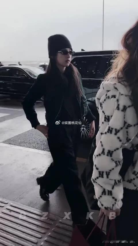 张婧仪进组《致我那菜市场的白月光》把机场走成了秀场,妹妹一身黑色造型又酷又美。