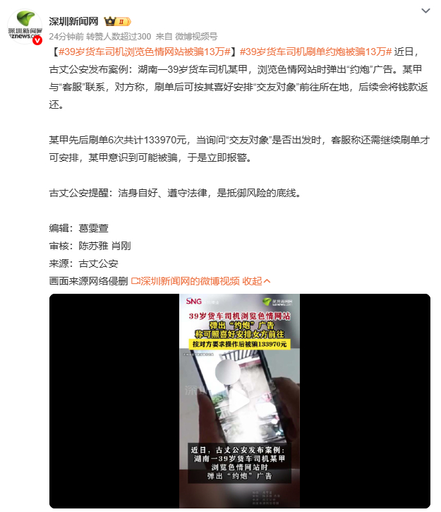 “以为刷单能约炮,结果刷光全家积蓄。”13万对货车司机意味着什么?是孩子三年学费,是父母养老钱,是妻子买新衣的期待。色情网站弹窗的“美女”,实则是骗子精心设计的陷阱。警方忠告:网络不是法外之地,招嫖违法且易被骗,洁身自好才是对家庭最大的负责。