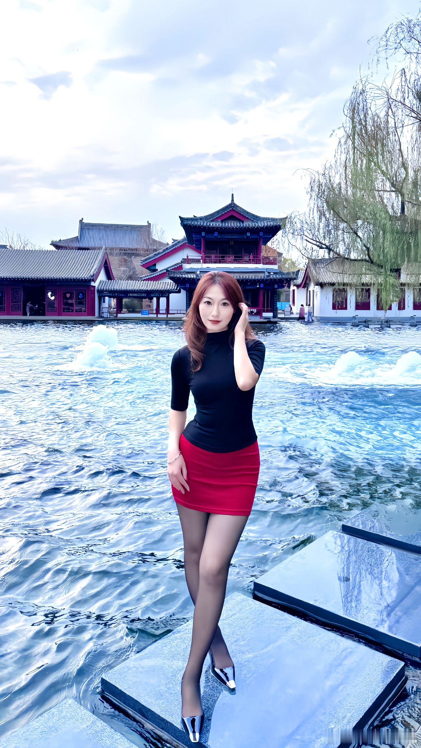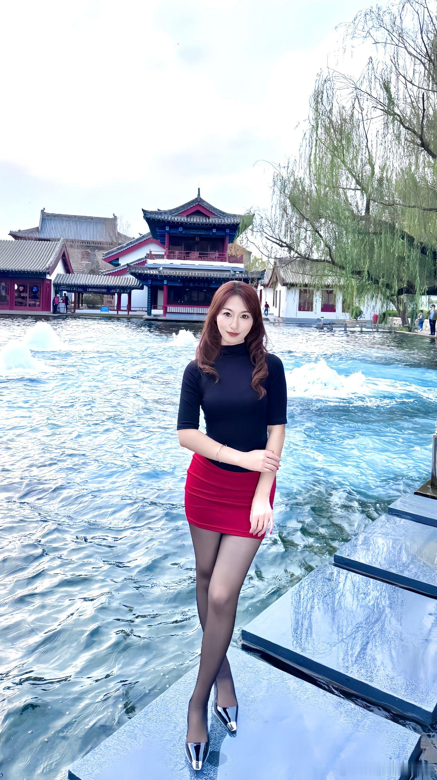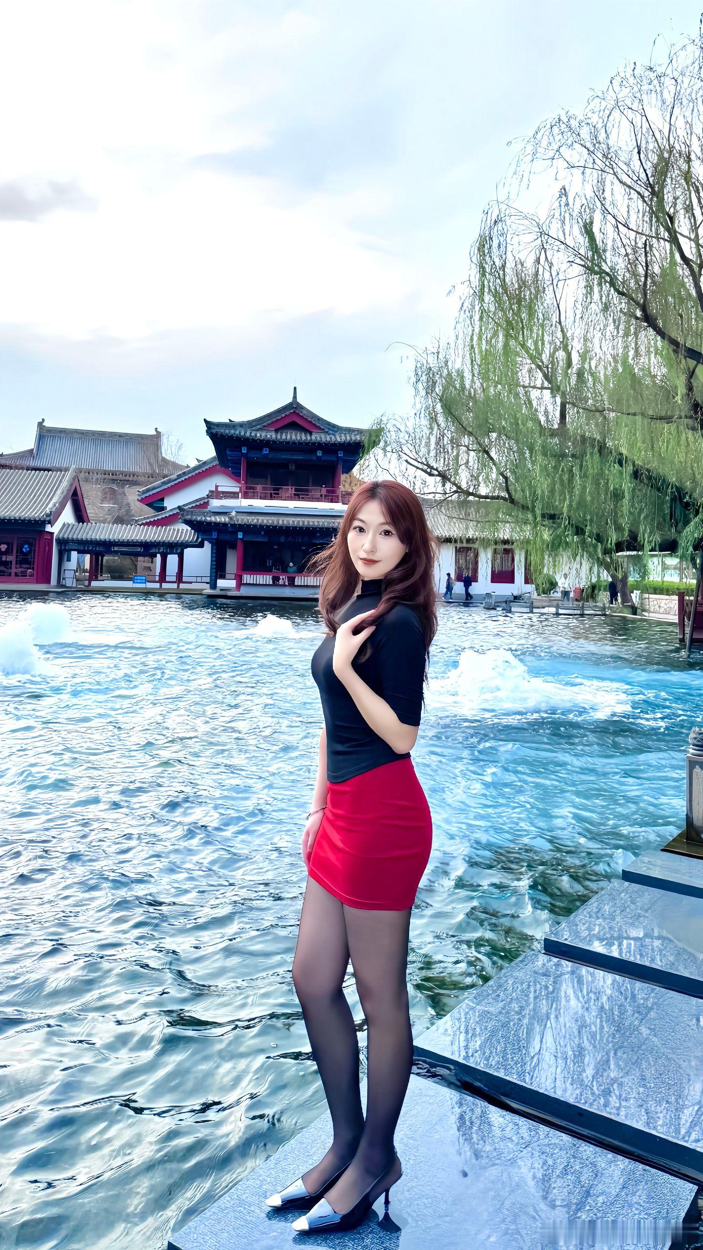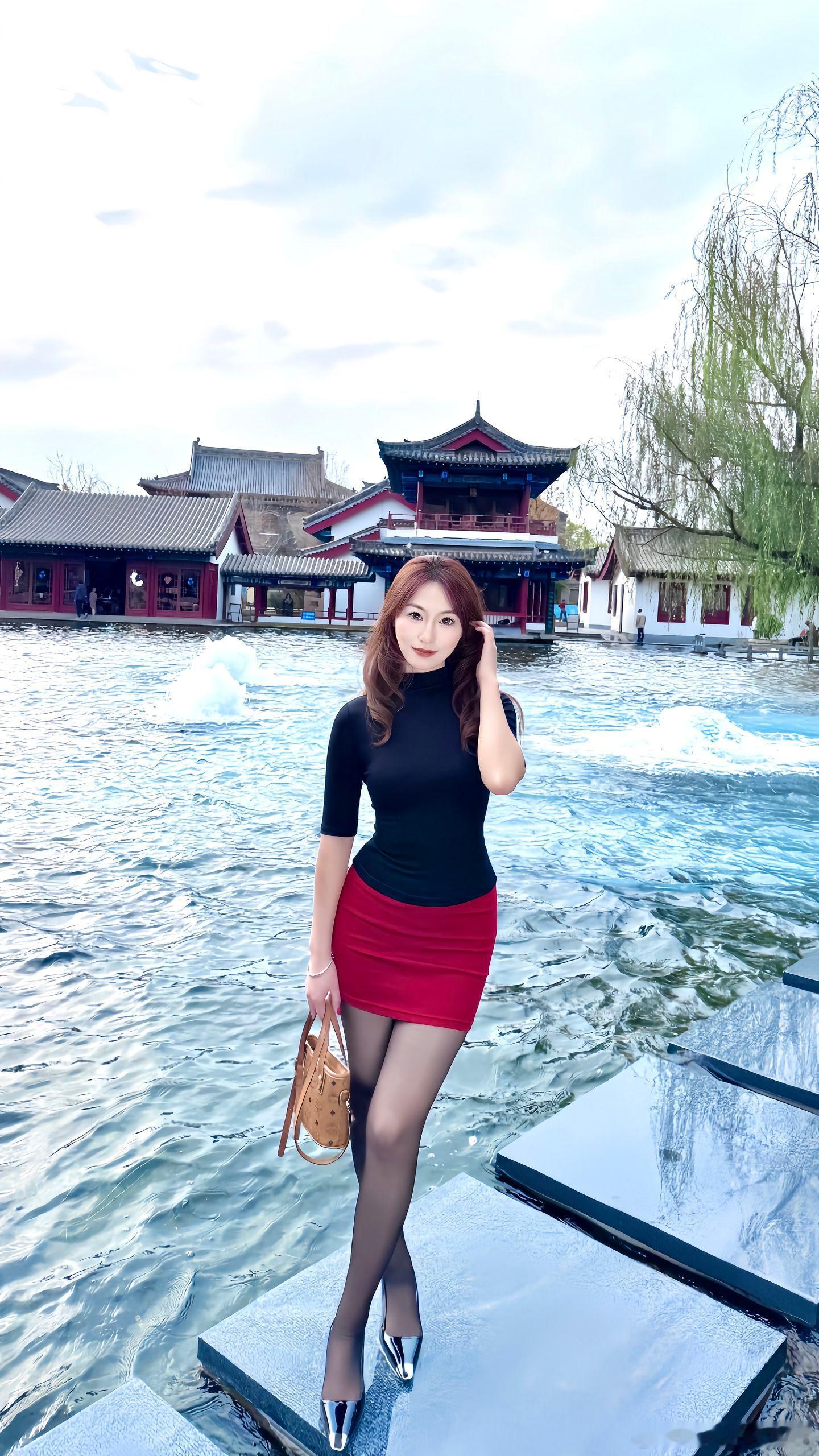 黑色外套配白色毛衣,加黑丝,一个悠闲的穿搭