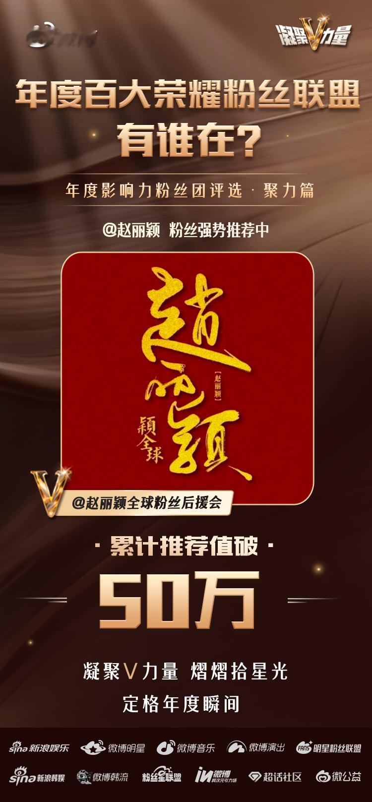 微博年度影响力粉丝团评选 📜【年度百大荣耀粉丝联盟・累计推荐值突破 50 万战报】🌰恭喜 累计推荐值突破 500000+ 🎉初心不改,一路同行~推荐活动正在进行中…👉点击🔗【】参与推荐,和 一起见证下一段高光旅程💫