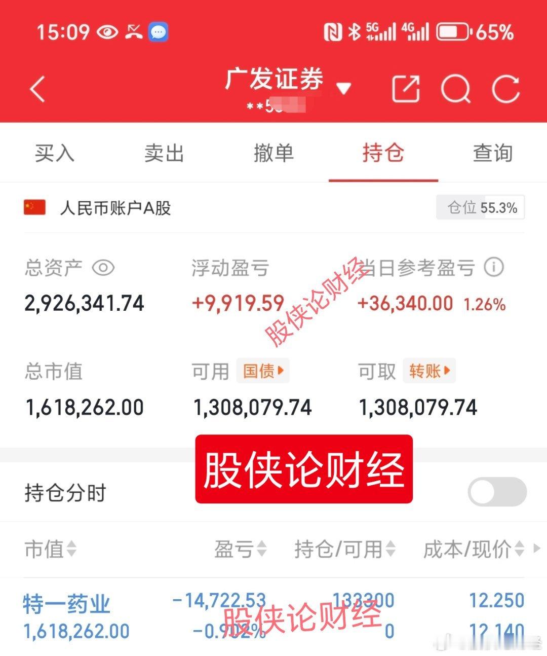 还好今天大盘好板块强不然凯美就跑不出来,特一明天看看能不能达到预期吧,达到就可以格局一下。30万本金实盘记录(第119天)目前资金:2926341.34元今日卖出:凯美特气 sz002549[股票]今日买入:特一药业 sz002728[股票]我会把每天实盘记录下来,我相信实盘肯定一直往前冲,希望各位股友支持股侠!点赞富一生,评论888票票长虹!特别声明:这只是我个人的操作记录,不作为任何投资建议,更不是劝你们跟买!股市有风险,投资需谨慎!!!🙏🙏🙏