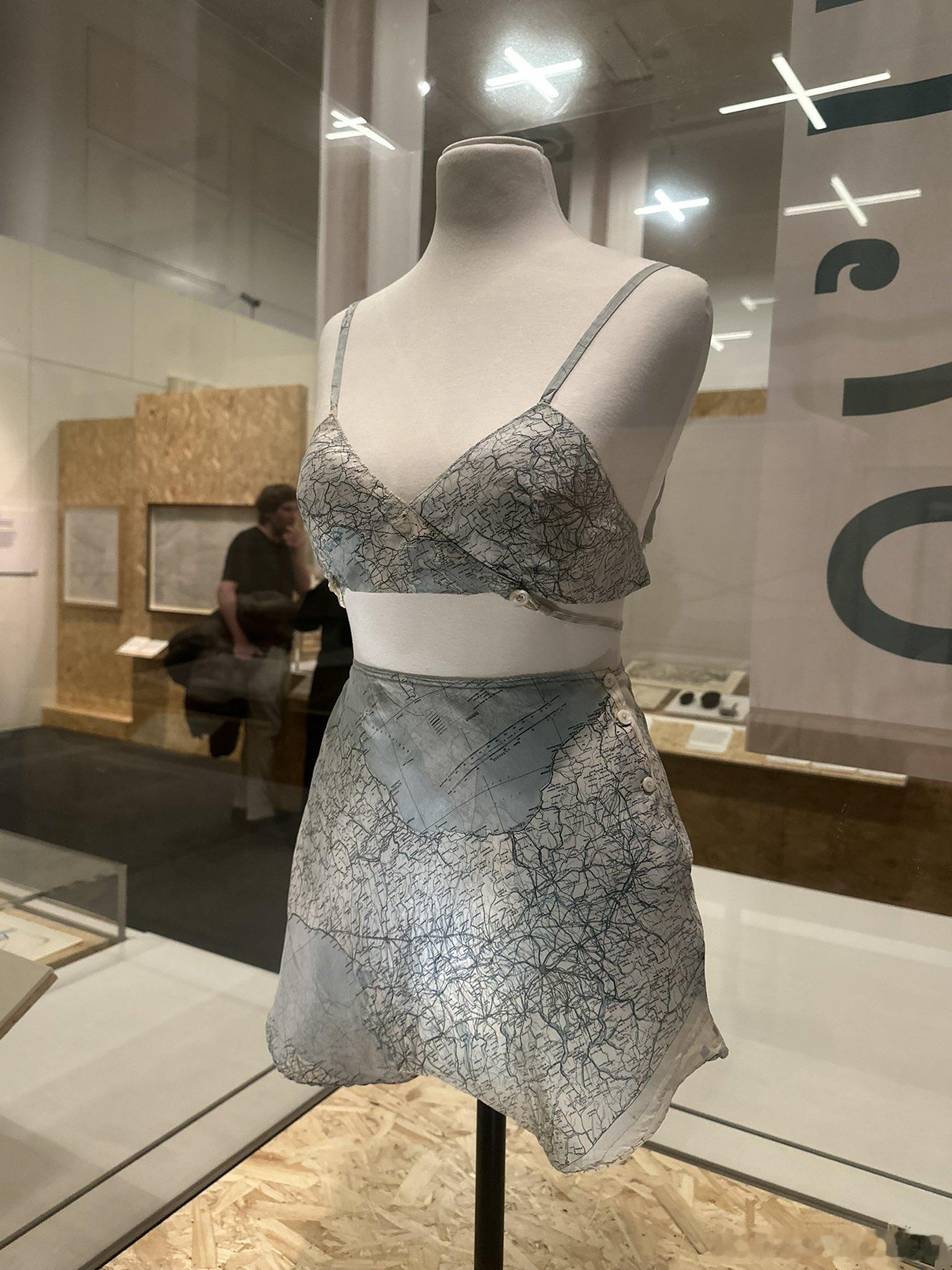 【时尚】一套1940年代为蒙巴顿夫人制作的内衣,采用二战逃亡地图,因面料耐用而印在丝绸上。