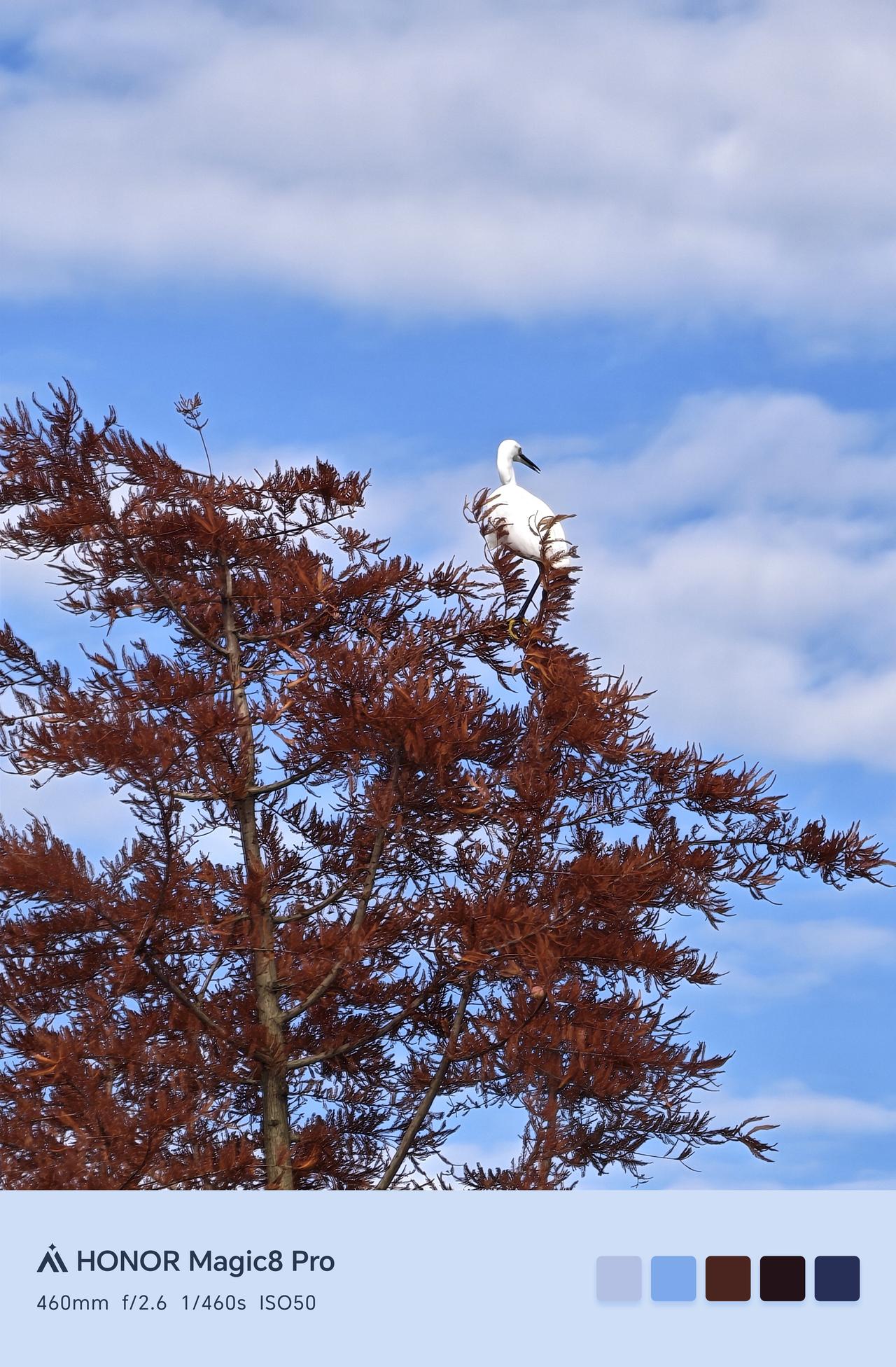今天天气好,公园里有不少拍鸟的,现场有个大爷说,你这手机拍的真好,离的远还能拍的清晰,这些野生的动物,太敏感了,就是不给机会靠近。 瞬间觉得,荣耀Magic8 Pro的长焦太给力了,没想到在外还能被别人夸。