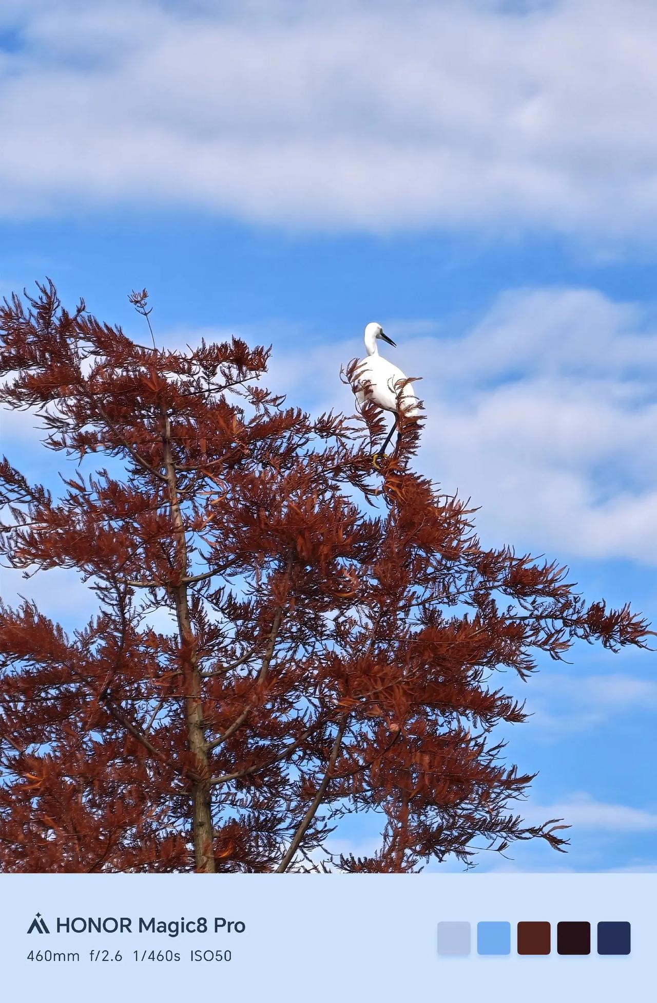 荣耀Magic8拍鸟神器。今天天气好,公园里有不少拍鸟的,现场有个大爷说,你这手机拍的真好,离的远还能拍的清晰,这些野生的动物,太敏感了,就是不给机会靠近。瞬间觉得,荣耀Magic8 Pro的长焦太给力了,没想到在外还能被别人夸。