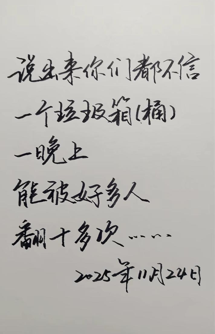 亲眼目睹过,一个小时之内,有四波人翻垃圾桶。在半夜!
