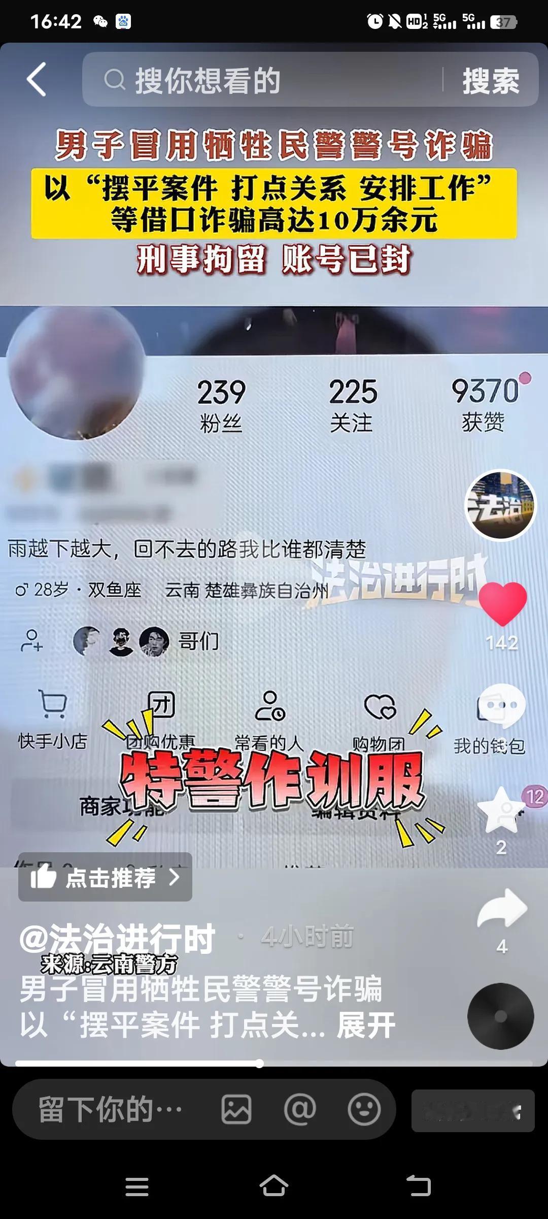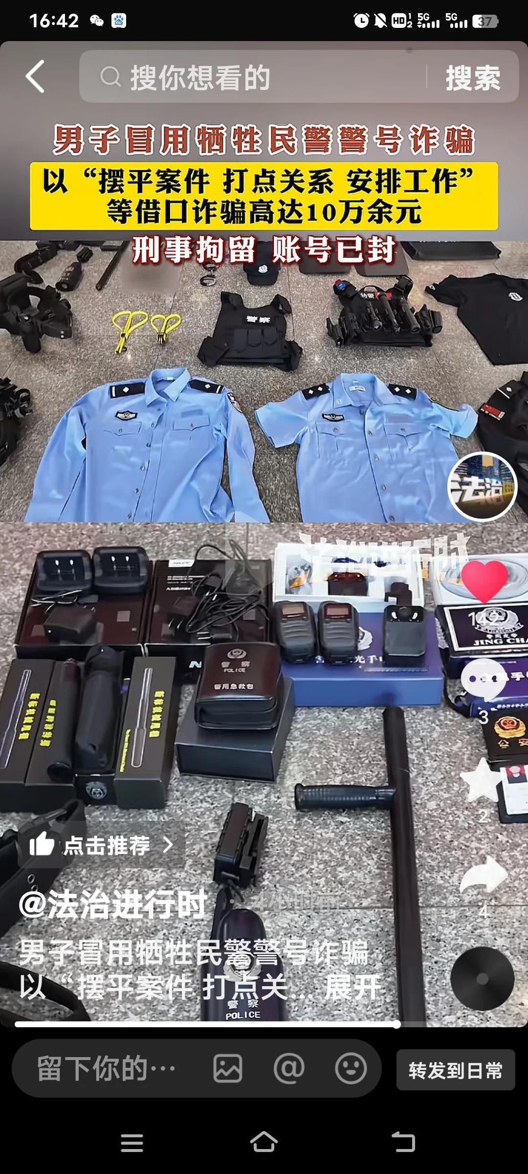 如今有些人胆子着实大得惊人。云南的王某江,竟虚构“市公安局民警”身份,以“摆平案件”等借口实施诈骗,涉案金额达10万余元。他不仅购置了假警服装备,还盗用牺牲民警的警号,在网络上发布身着假警服的视频和图片,其行为十分恶劣。 最终,王某江被楚雄警方抓获,社交账号也被封禁。这些骗子实在可恶,必须予以严惩!他可能会被判处三年有期徒刑。想必现在他后悔也来不及了,这种事怎么敢做呢?真正的民警可不是好惹的,岂会轻易放过他?这下真是得不偿失了。 身份证诈骗 冒充警方