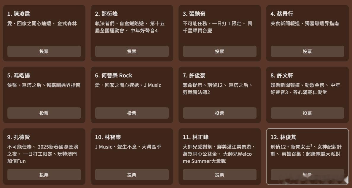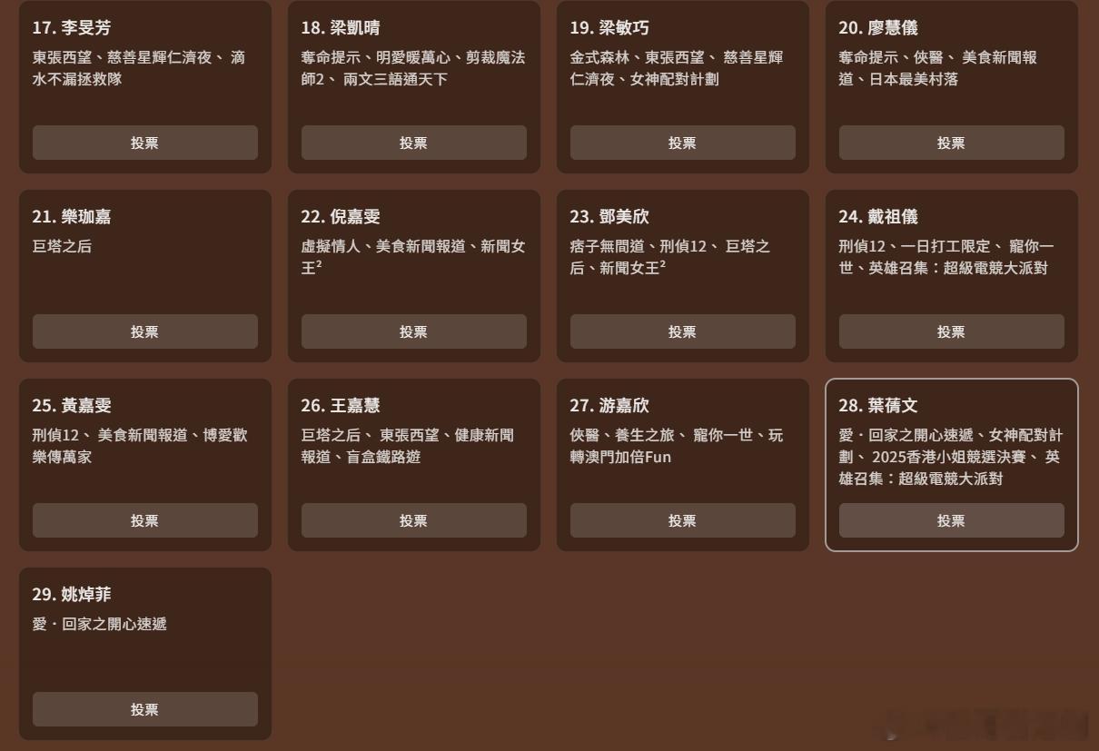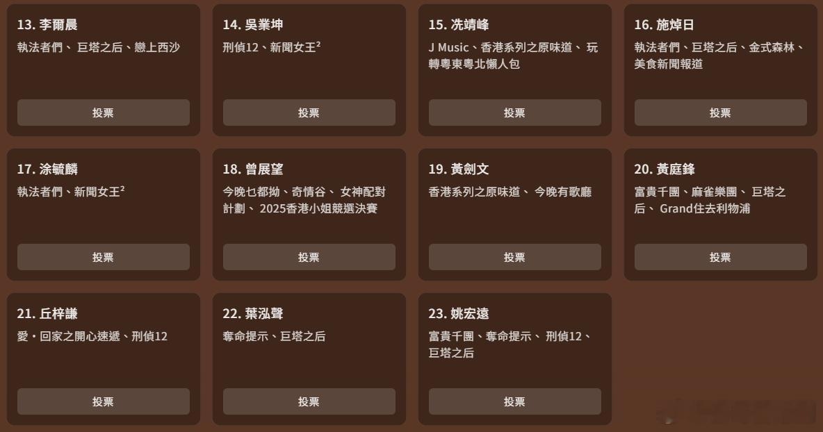 2025萬千星輝頒獎禮候选名单丨飞跃进步男、女艺人飞跃进步男艺人共23人获得提名,女艺人奖则有29人获得提名。
