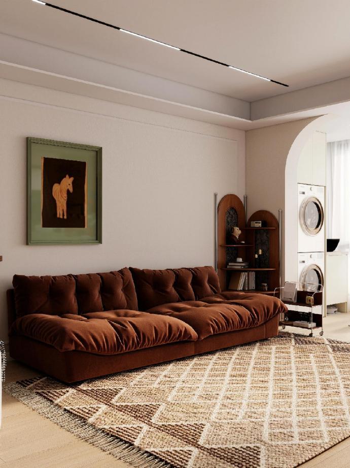 家居设计|法式复古焦糖色复古沙发氛围感拉满,拱形门洞+罗马柱暗藏法式浪漫,壁