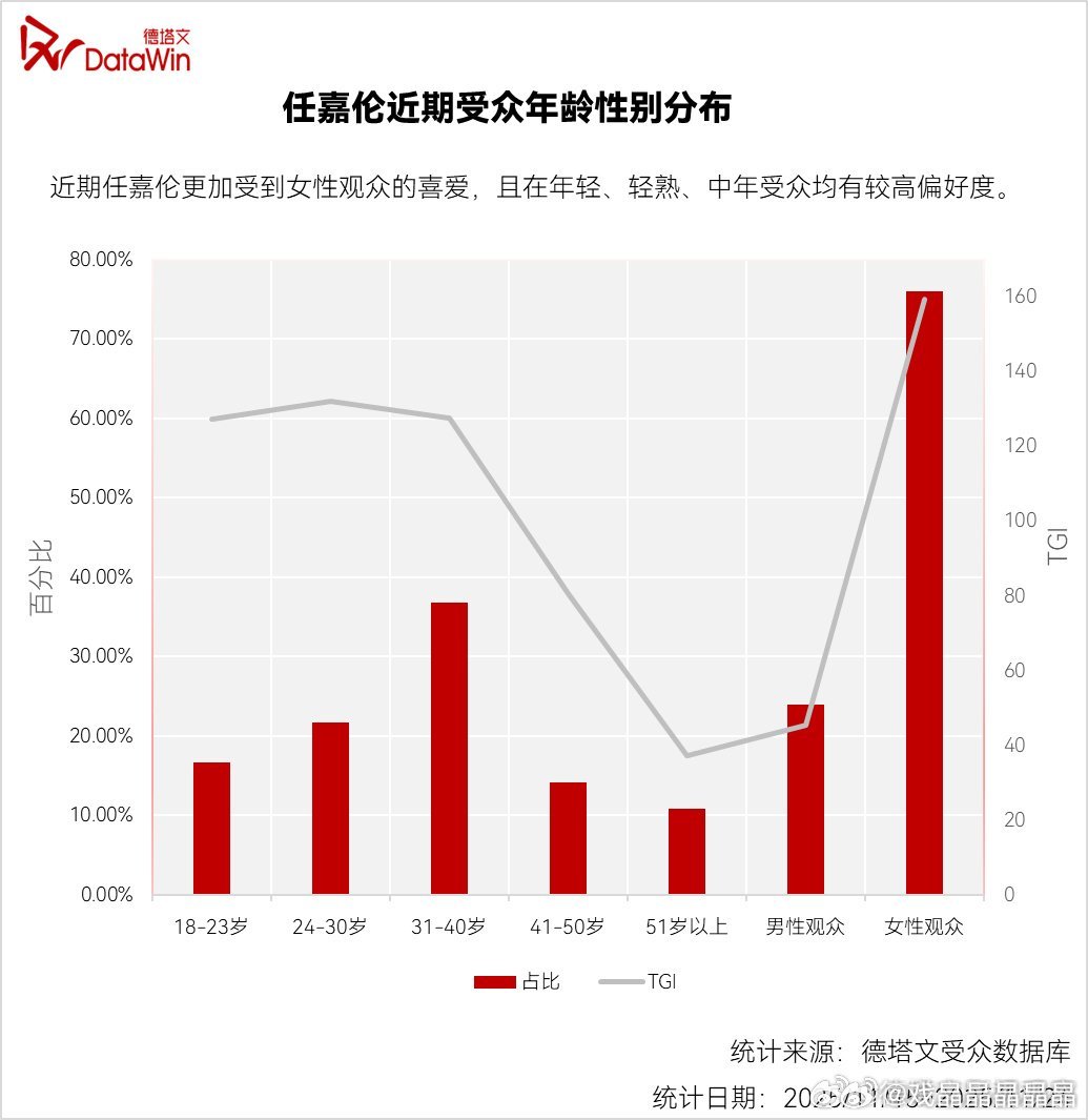 还是专业数据公司会夸。由 领衔主演的古装爱情剧 正在热播,据德塔文数据显示,任嘉伦饰演的 一角,凭借高达52%的角色贡献度峰值,成为剧集热度的核心引擎,再次验证了其作为头部演员在市场端的稳固号召力。萧焕这一角色的成功,核心在于任嘉伦通过表演质感消解了古早角色设定的悬浮感,将一位“疯批帝王”成功落地为有血有肉的实感人物。任嘉伦在成年女性观众及新一线、二线等高消费力城市中表现出较高的 TGI 偏好度,说明其表演能有效触达主流消费者,为演员商业价值的转化提供了有利条件。