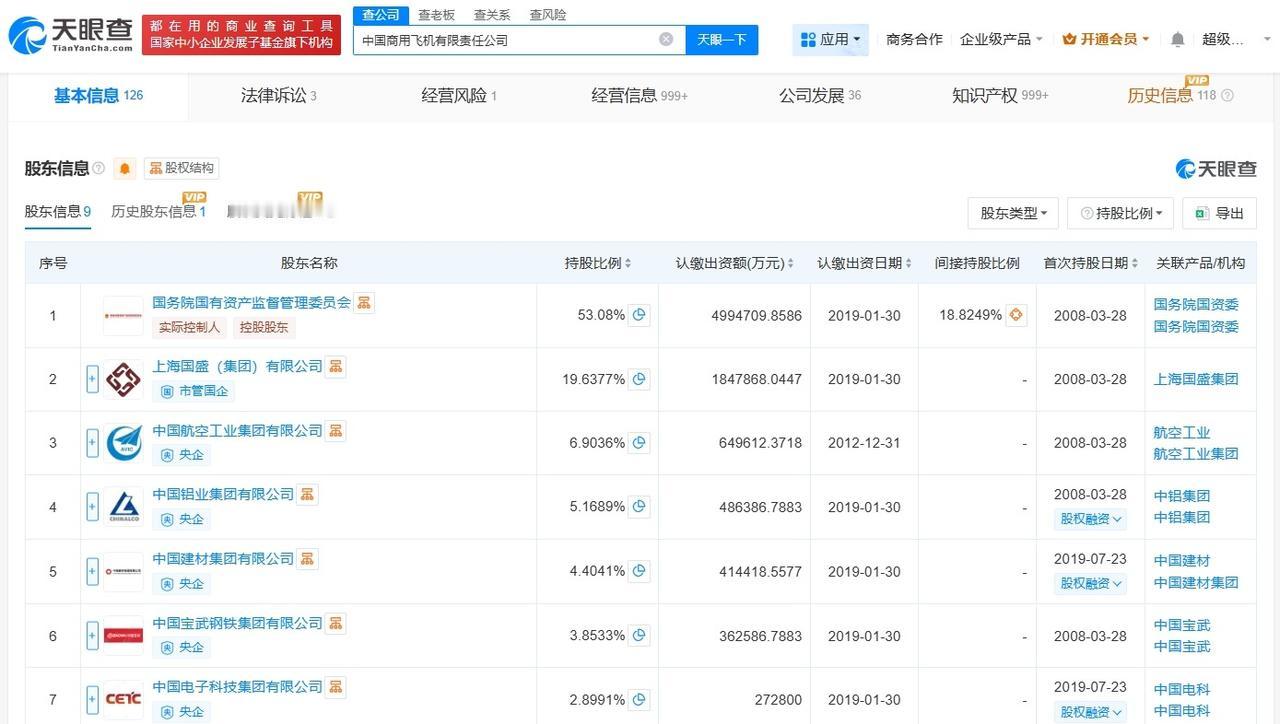 中国商飞增资至940.98亿增幅约88% 天眼查App显示,近日,中国商用飞机有限责任公司发生工商变更,注册资本由约501.01亿人民币增至约940.98亿人民币,增幅约88%。 该公司成立于2008年3月,法定代表人为贺东风,经营范围含民用飞机及相关产品设计、研制、生产、改装、试飞、销售、维修、服务、技术开发和咨询服务等。股东信息显示,该公司由国务院国有资产监督管理委员会、上海国盛(集团)有限公司、中国航空工业集团有限公司等共同持股。 天眼查信息: