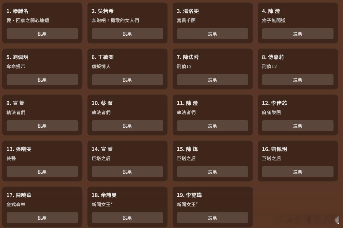2025萬千星輝頒獎禮候选名单丨最佳女主角(共19项提名)《执法者们》、《巨塔之后》3人提名,《刑侦12》及《新闻女王2》2人提名,其他剧集各有1人,包括已经离巢的Ali。