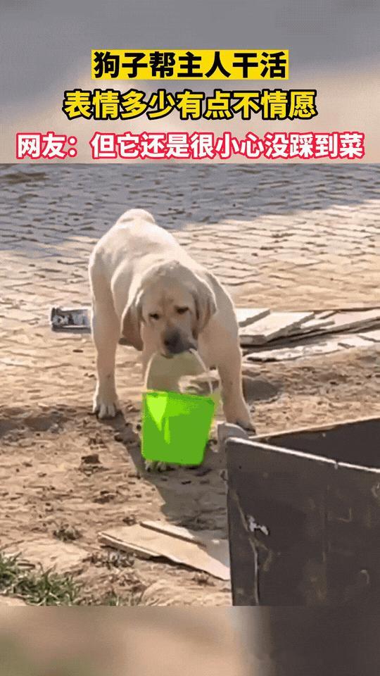 这狗子也太通人性了!北京有只狗狗,跟着主人在田里干活,脸上却愁眉苦脸的,一看就是特别不情愿。 主人在菜园浇水施肥的时候,它本来在一旁翘着腿晒太阳,装着没听见主人喊它帮忙。结果主人气不过,揪着它的耳朵把它拉过来,扔给它一个小桶,让它去接水。 它叼着小桶往前走,那笨笨的样子特别可爱,主人在后面忍不住笑。虽然满脸都是委屈,像在说“为了一口吃的我忍了,这个家没我可不行”,但它走的时候特别小心,半点都不踩到菜苗,真是只讲究的狗子,看得出来主人平时教得好。 网友都笑说,这狗子比自家“逆子”勤快多了,脸上全是“谁懂啊,狗界打工好累”的样子。果然世界上不能没有狗狗,它们对人又真诚又忠诚!