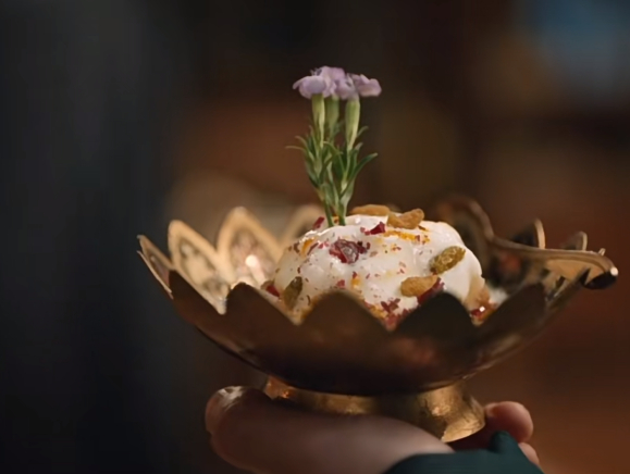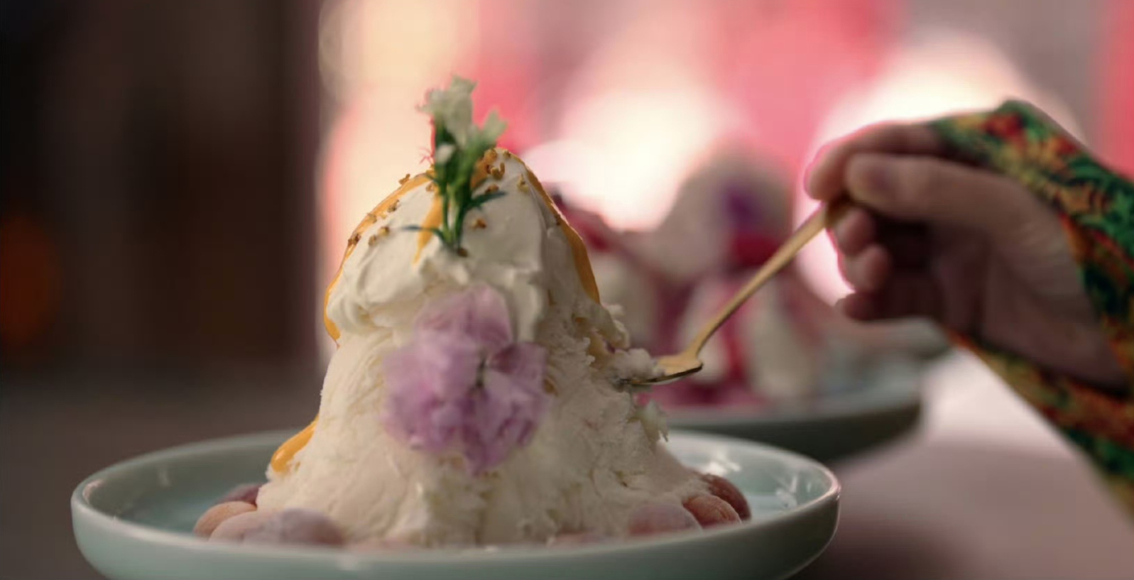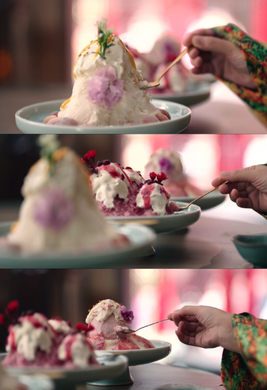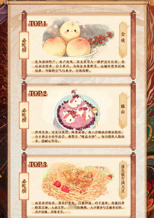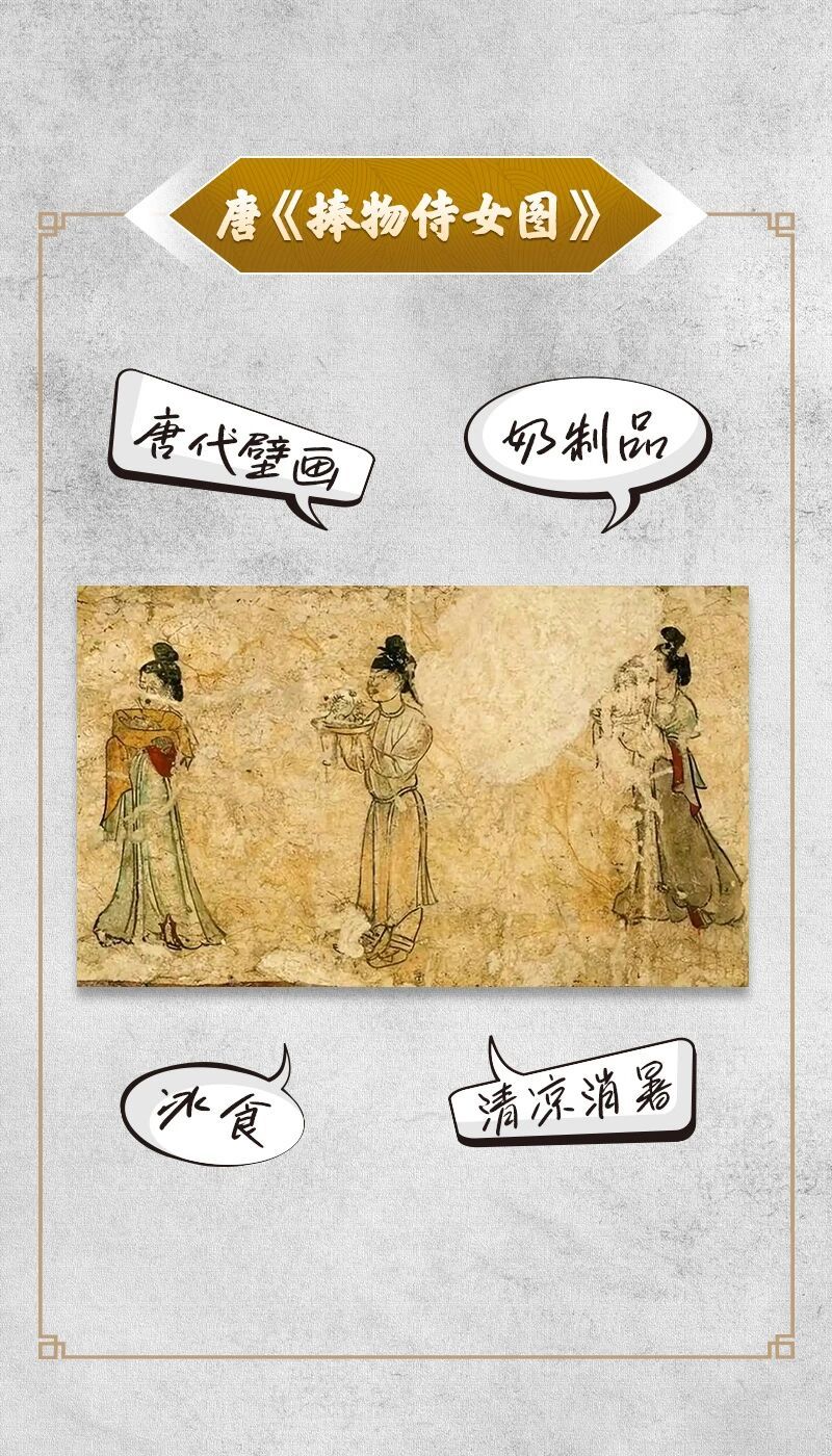 【】 有没有人和小鱼妹儿一样,看《》时,真的很想来一碗酥山尝尝!(特别是樱桃味儿的!)酥山有点像唐代的奶油冰激凌,在《捧物侍女图》里,一个宫廷侍女捧着金盘,隐约看出里面盛放的是一层白色制品,其上点缀着红色和青色的花枝装饰,据专家考证,这个食物很可能就是酥山。“装彩树而形绮,杂红花而色斑,吮其味则峰峦入口,玩其象则琼瑶在颜。”这是唐代《苏合山赋》里记载的酥山。“酥”类似于今天的奶油或黄油,一般先将成品的酥加热到融化状态,拌入蔗浆或蜂蜜调味,浇在冰底之上,并一边浇一边做出山峦的造型,再放入冰鉴冷冻定形,点缀上花朵和小树即可食用。据诗人王泠然的描述,酥山的口感介于固态和液态之间,入口即化。他还在这篇赋里很直接地表达了对酥山的喜爱,“虽珍膳芳鲜,而苏山奇绝!”酥山就是最好吃的!小鱼妹儿还发现, 真的有酥山文创哎!今年夏天,沈阳故宫博物院还原古代冰淇淋制法,结合现代生产工艺,推出了“古磨酥山”系列文创冰淇淋,你想去试试嘛?