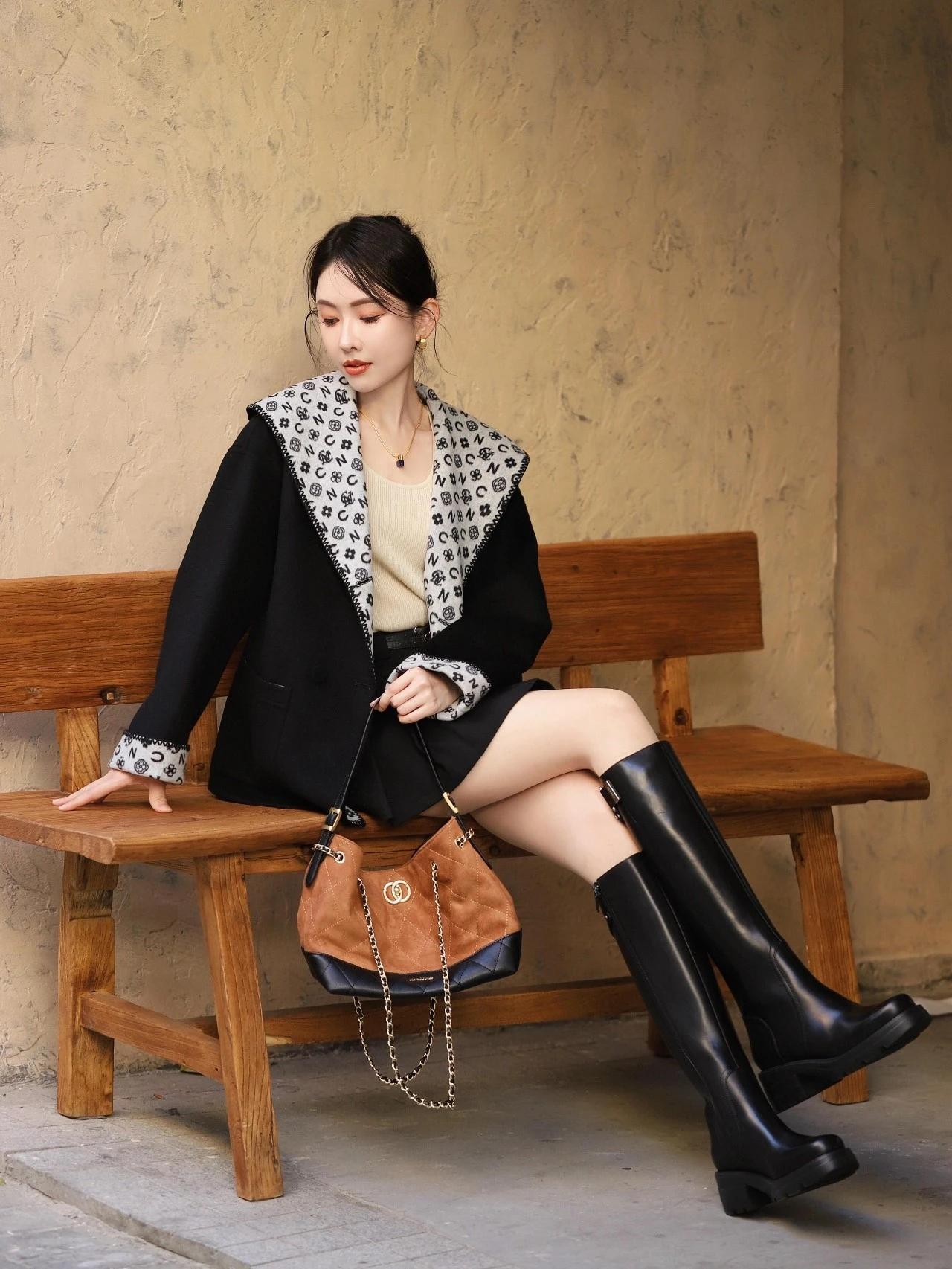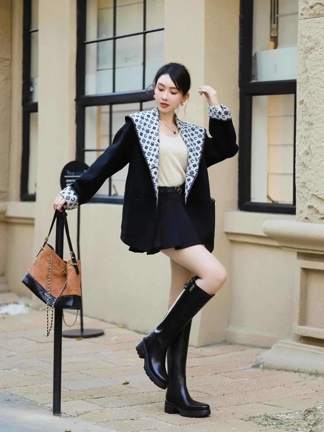 棒球服+短裤配丝袜,秋冬完美穿搭