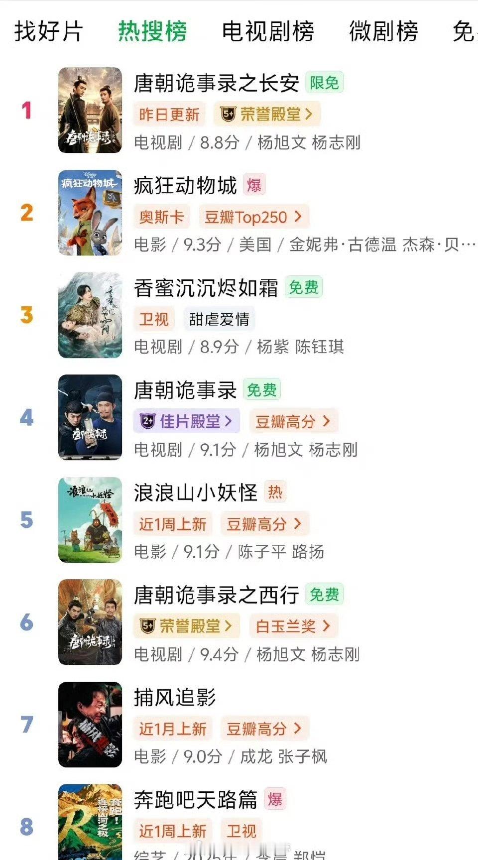 杨紫《香蜜沉沉烬如霜》🥝电视剧榜二,热搜榜三!长尾强👍🏻
