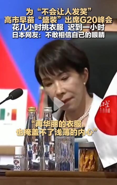 高市将“相由心生”这个词展现得淋漓尽致!古人云“两腮无肉不可交”,可见这“尖嘴猴腮”一脸谄媚的面相,既不旺夫,又不旺国...更离谱的是,一国首相G20迟到竟只因花了几小时纠结穿什么衣服?虽说女人爱美是天性,但再华丽的衣装也掩盖不了她灵魂的苍白,还有极度纠结背后藏不住的自卑和轻浮,难怪一上台为了博眼球,故意高调挑衅妄言,意图展示自己的强势一面......没想到却惹出天大祸事,引两国关系“天崩开局”,可她就是硬着头皮不承认,依然一意孤行,貌似想要一条道走到黑...只可惜一切妄想与东大抗衡的,终将自绝于未来!
