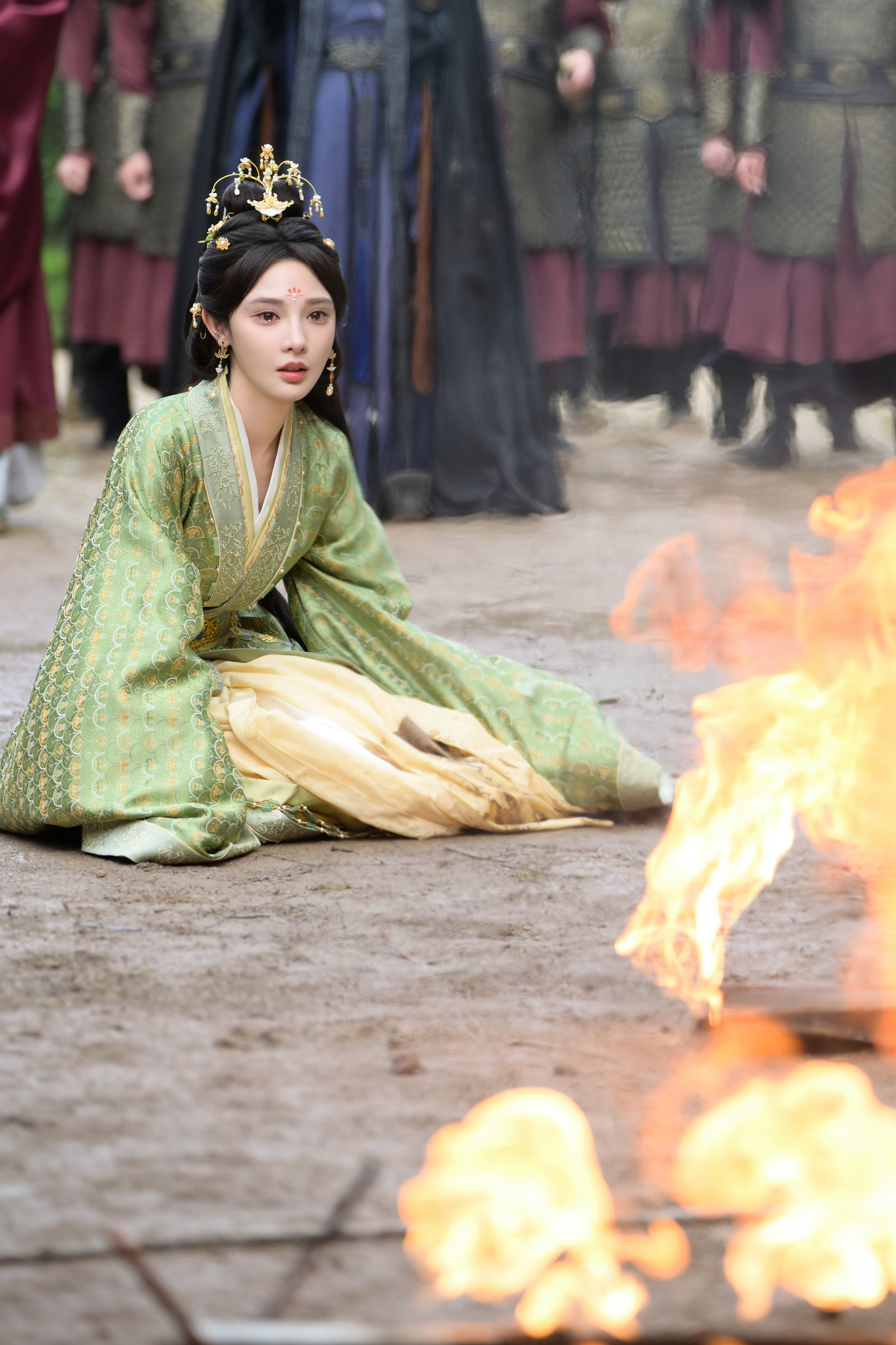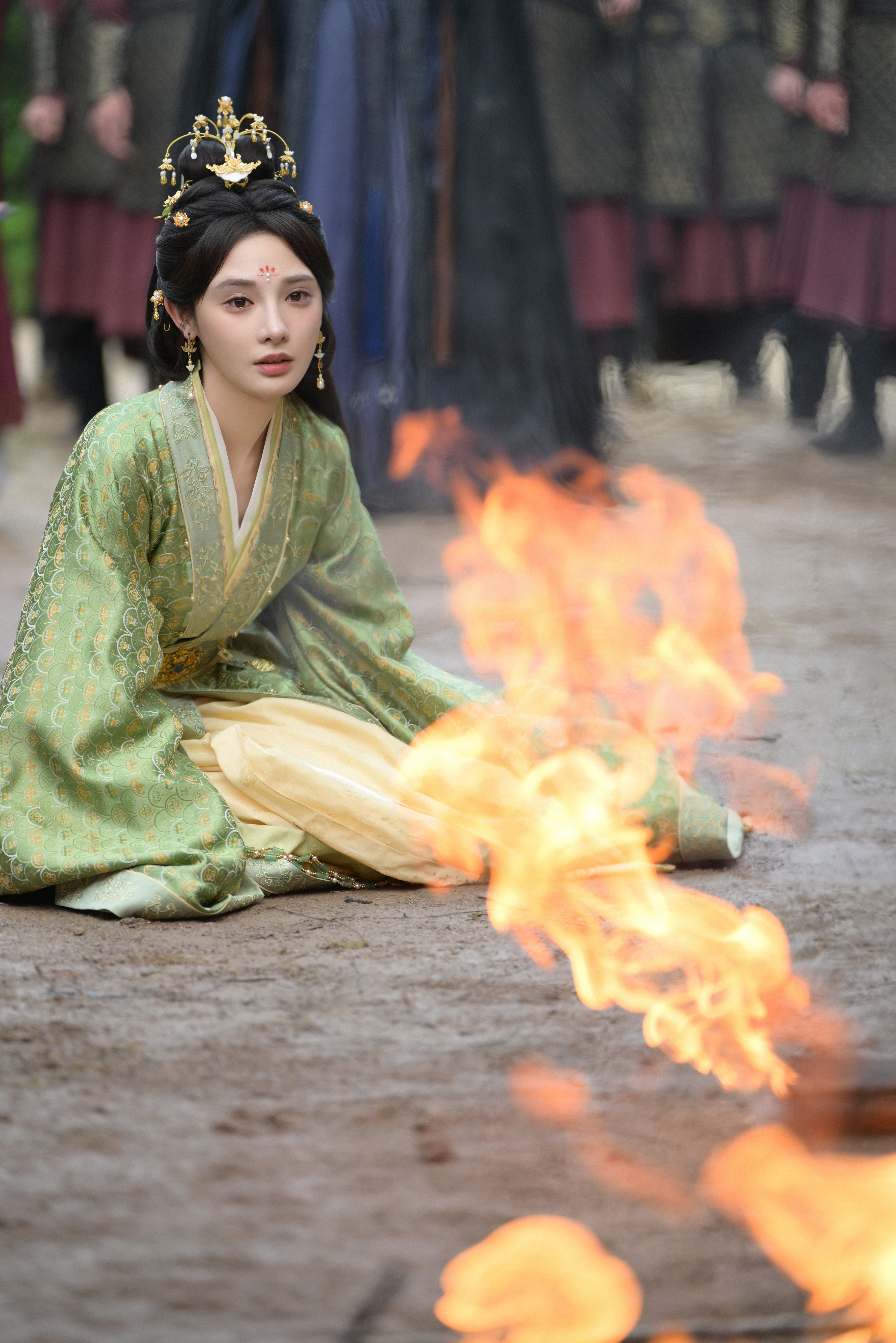 《凤凰台上》凌苍苍☽ 剧照-绿衣-跪地大哭。°(°¯᷄◠¯᷅°)°。😭😭😭