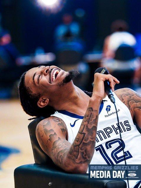 莫兰特今天化身Ja教练! 希望莫兰特和球队能融合的越来越好吧,还是希望他一直留在