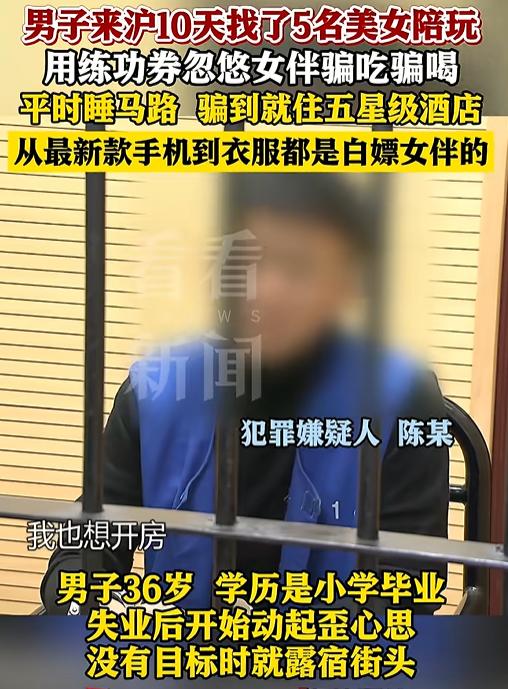 上海一男子短短10天内,分别和5名女子约会开房,自己却一分钱没掏,而且吃的喝的,就连用的手机,都是女方给的钱,5名女子前前后后,花了5万元在男子身上,原来,她们都被男子“富豪”表象给骗了,面对警方,男子直言不讳:警官我说句实话,我无非就是想白嫖! 真是刷新三观!陈某在上海混了好几年,从来没找过正经工作。最惨的时候,他裹着捡来的旧外套在商场长椅上蜷一宿,天桥底下的台阶被他当成“固定床位”,可转头就能西装革履住进五星级酒店,穿的是最新款潮牌,用的是刚上市的苹果手机 ——这些玩意儿没花他一分钱,全是从5个姑娘手里“白嫖”来的。 陈某的骗术全靠“装”。他从网上扒了张穿西装打领带的商务精英照片当微信头像,简介写着“资深投资经理”,朋友圈更是精心包装:隔三差五发“会议室待了8小时,终于谈成千万单子”“刚落地深圳,下礼拜飞北京”的文案,配着从网上盗的写字楼、机场照片,营造出“钱多得花不完”的假象。 他还注册了个小号当“陪玩中介”,在社交平台发“高薪陪玩”订单,标价“一小时300块”,女子联系时,他就用中介号说“得交10%中介费留名额”,钱直接进了自己腰包。 短短10天,他就约了5个姑娘见面。每次跟姑娘去酒店,他先找个没人的地方接个“假电话”,挂了电话就从包掏出个牛皮纸信封,里面装的全是练功券,码得整整齐齐,当着姑娘的面放进酒店保险箱,偶尔还“不小心”露个角,让对方瞅见那厚厚的一沓,以为是几万块现金。 吃饭、买奶茶或者逛商场时,他就皱着眉戳手机,要么说“这破信号,转账页面一直加载”,要么拍大腿喊“坏了,银行卡今天限额了”。 被“现金信封”蒙住的姑娘,大多会主动掏钱:“没事,我先垫着,等你转开了再给我。” 他身上的潮牌外套、限量版手机壳,全是前一个受害者送的“礼物”。节奏最快的一天,中午还跟第四个姑娘在日料店吃饭,晚上就带着第五个姑娘住进了另一家五星酒店。 直到有个姑娘觉得不对劲,趁他洗澡偷偷打开保险箱,看见一沓印着“练功券”的假钱,当场傻了眼,立马报了警。 警察找上门时,陈某还梗着脖子狡辩:“我又没逼她们付钱,全是她们自愿的,这也算骗?” 可证据摆在面前,容不得他抵赖。最终,他因涉嫌诈骗罪被依法批捕。 有网友说:“这演技不去跑龙套可惜了!白天睡天桥裹旧外套,晚上装老板住五星” “本以为是青年才俊,结果是‘白嫖’惯犯,那沓练功券真是把‘驴粪蛋表面光’演到极致了”。 这小子把脑子全用歪地方了!其实陈某的骗术看着花里胡哨,核心就俩字:忽悠。他摸准了有些姑娘对“投资经理”“青年才俊”这类身份的好感,先用朋友圈的假人设打底,再用“练功券现金”搞出个“心理锚点”——让她们先入为主觉得“他不缺钱,就是暂时转不了账”,主动付钱时还觉得是“帮了对方一个小忙”,压根没往“骗”上想。 这类“身份伪装诈骗”有个共性:只“秀”不“花”——秀现金、秀身份、秀人脉,但从不主动花钱。 陈某比一般骗子更鸡贼的是“滚雪球套路”:用前一个姑娘送的潮牌、手机装点自己,骗下一个时更有说服力;收的“中介费”又能当自己的“活动资金”,让骗局循环起来。 有人说“这些姑娘太傻”,可换谁遇上了,都可能栽跟头。 说白了,不是她们傻,是骗子抓准了“人愿意相信美好的事物”的心理。 最让人膈应的是陈某被抓后的态度——他到最后都觉得自己没做错,还觉得是女子“自愿送上门的”。这种认知偏差才是最可怕的,他把别人的善意当“傻”,把诈骗当“本事”,却忘了“纸包不住火”。 这事儿给所有人都敲了记警钟:天上不会掉馅饼,更不会掉“又帅又多金还主动粘你”的青年才俊。 遇到陌生人过分热情、身份光鲜却总找借口不花钱,一定要多留个心眼——哪怕他掏出“一沓现金”,也别轻易信,真金白银不会怕验证,假的一戳就破。 而像陈某这样,总想靠着坑蒙拐骗“走捷径”,迟早会栽大跟头。耍小聪明骗来的一时风光,终会被法律清算;那些靠欺骗堆砌的“美好”,迟早会碎得一干二净。