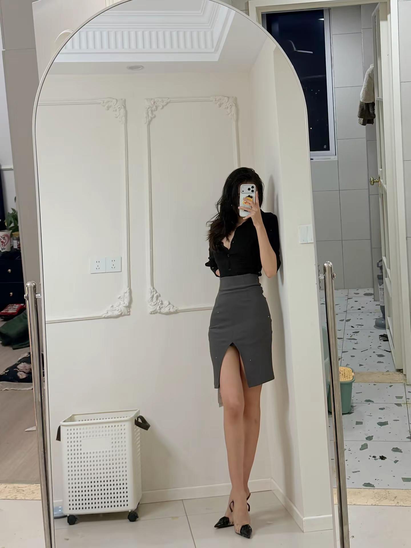 听说美女都穿包臀裙。全身镜 辣妹穿搭 运动健身服 对镜自拍姿势 对镜子拍