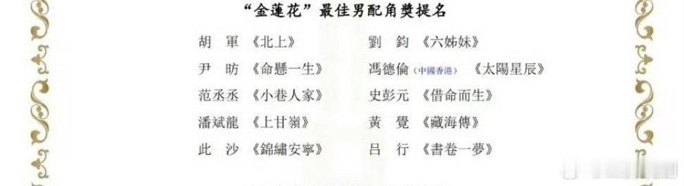 范丞丞凭借电视剧《小巷人家》提名金莲花奖最佳男配角,恭喜!
