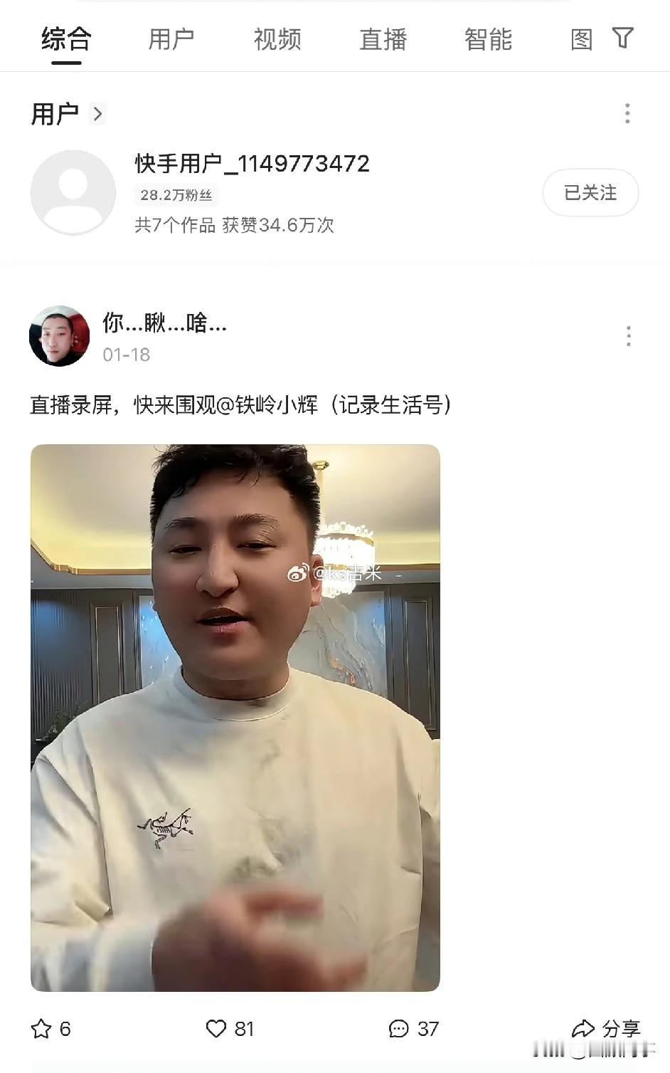 凉凉!铁岭小辉醉酒当众漏Niao永久封禁,恐构成刑事犯罪再入狱服刑。 今天上午,ks发生一件劲爆大事!宿醉的铁岭小辉与赵本六连麦,因被言语刺激便抱着同归Yu尽的心态,当众脱Ku子漏Niao,言语极度不堪。吓得本六急忙挂麦!没脱之前,赵本六还怂恿铁岭小辉再多喝点! 今天下午,铁岭小辉的大小号全被永久封禁。