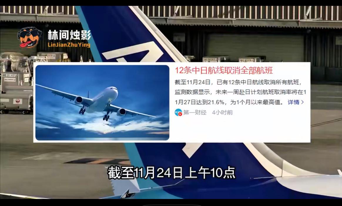 台湾没事日本反倒有事了!12条中日航线取消全部航班。 日本此番真是自作自受。高市早苗就“台湾问题”肆意妄言,这下可好,多家中国航空公司调整了对日航班服务。截至11月24日10点,12条中日航线的航班全部取消。 未来一周,11月27日赴日计划航班取消率将达21.6%,创下1个月以来的最高纪录。比如天津滨海 - 关西国际航线取消率达65.0%,南京禄口 - 关西国际航线也有59.4%。 台湾问题是中国的核心利益所在,岂容日本挑衅。高市早苗的一番话,让日本在航空等多个领域付出了代价,而这还仅仅只是开始。如果日本还不思悔改,必将遭到更猛烈的打击。