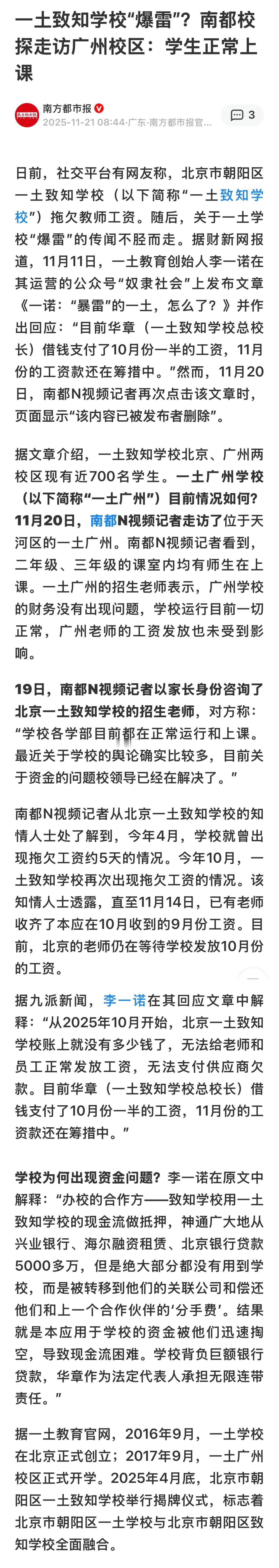知名教育创新者、北京一土致知学校创始人李一诺的个人及其运营的“奴隶社会”视频号,于11月23日被发现均已封禁。此前,其创办的一土学校自10月起陷入“暴雷”“欠薪”风波。 李一诺本人曾于11月中旬公开承认学校面临严重财务困难,无法支付薪酬及供应商货款。为筹措资金,她通过网络直播售卖自有品牌手账,称所得约200万元将用于补发工资。 此次封号引发网民多种猜测。有观点认为可能与学校经营失败、甚至涉嫌资金挪用有关;也有声音质疑其教育模式名不副实,并批评李一诺本人在学校危机期间身处日本直播,其三个孩子亦长期在日本就读,此举被指为“往枪口上撞”,或因此被举报导致封号。