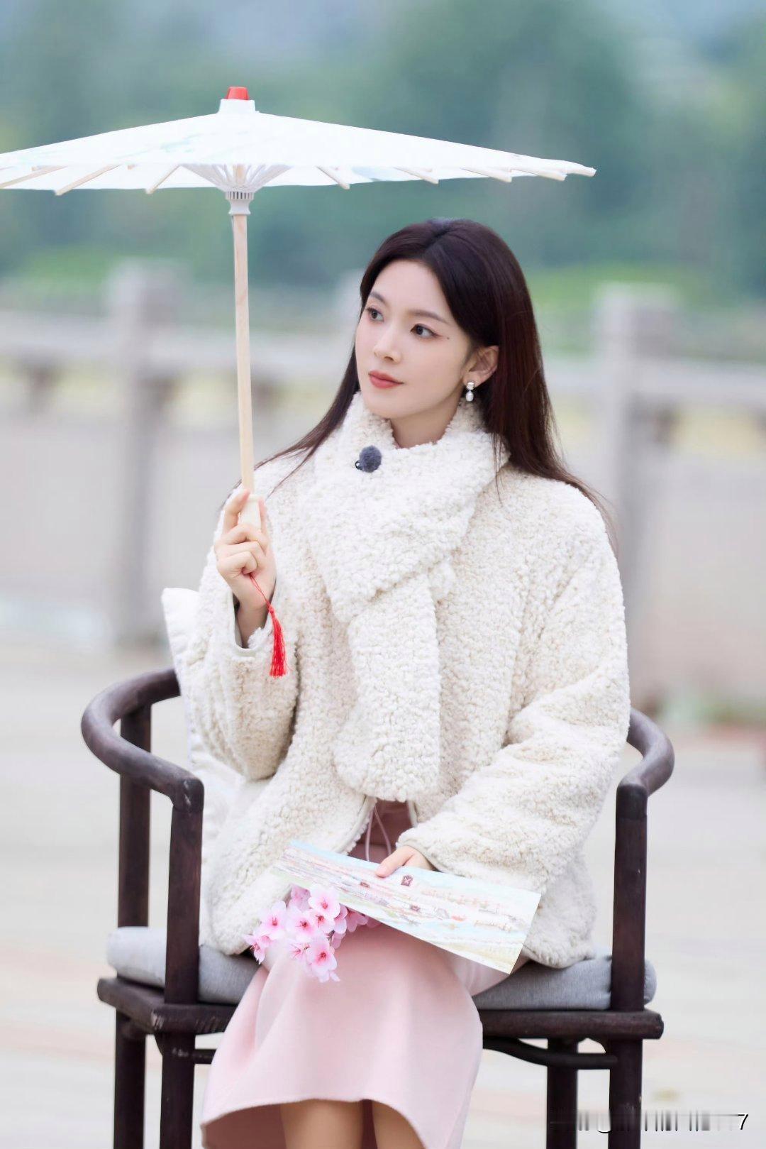 冬日暖阳下,优雅少女手执伞,静享阅读时光。