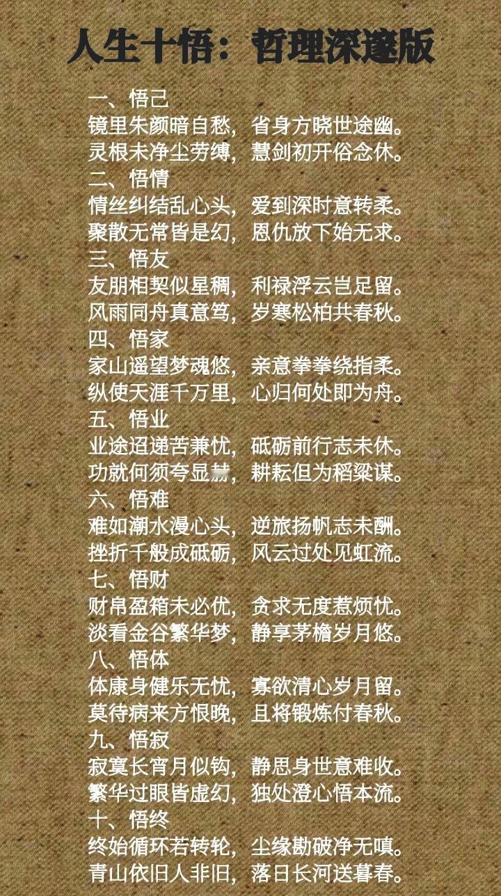 十悟: 悟己、悟情、悟友、悟家、悟业、悟难、悟财、悟体、悟寂、悟终