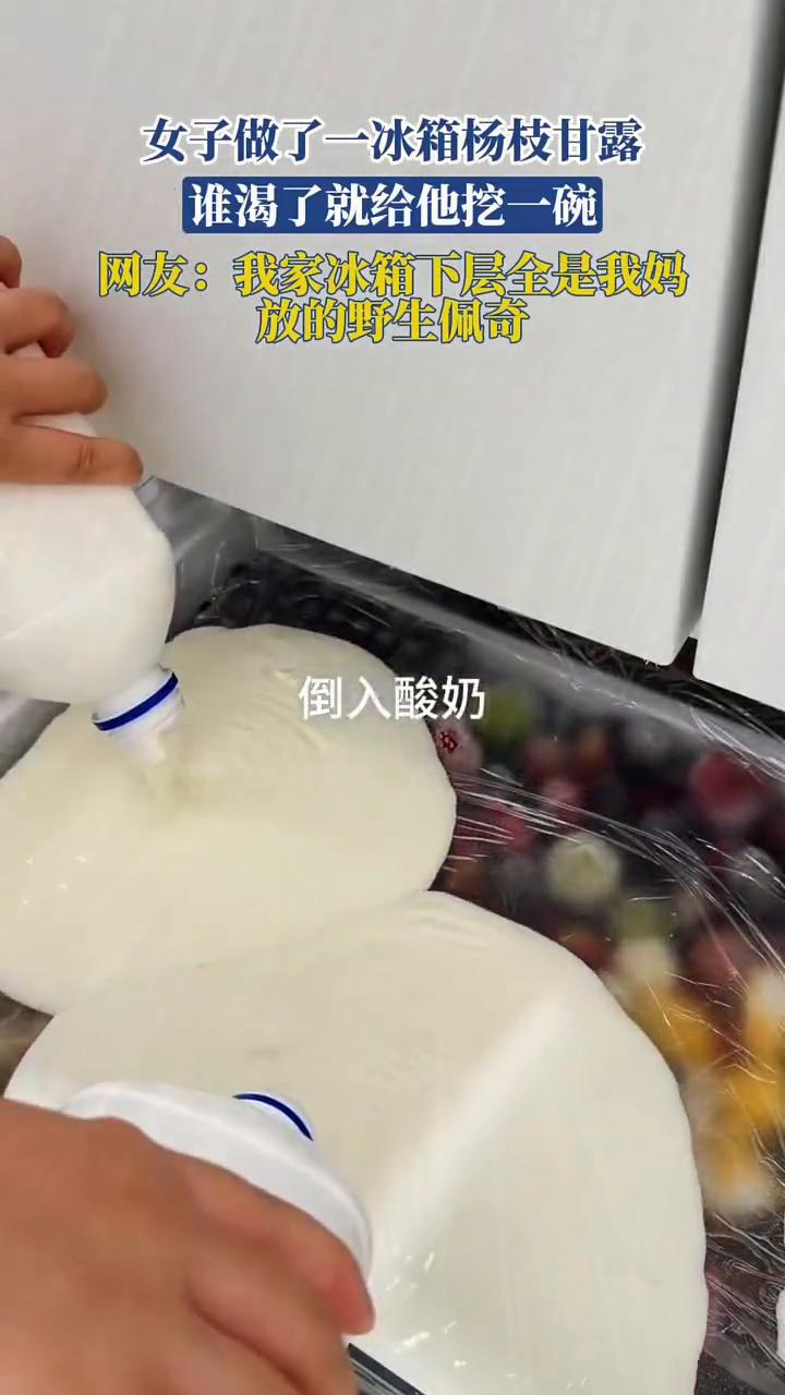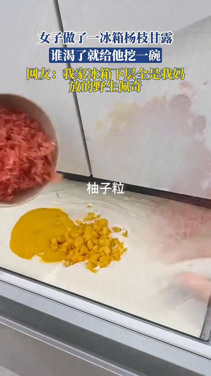 女子做了一冰箱杨枝甘露,谁渴了就给他挖一碗。网友:我家冰箱下层全是我妈放的野生佩