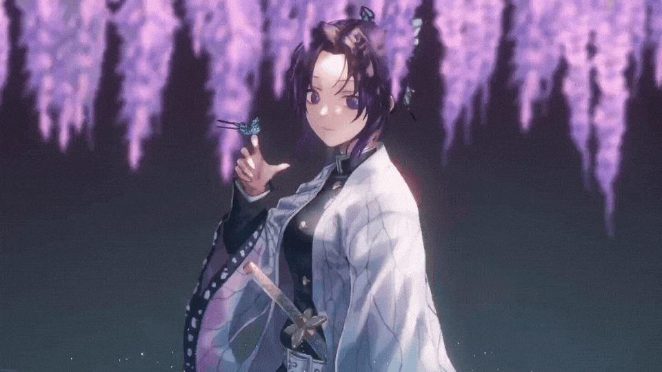 两张绝美的蝴蝶忍动态图。她是翩跹的紫蝶,薄刃如翅划破暗夜阴霾。银发紫眸映着刻骨伤痛,却以温柔笑意掩去仇恨,将医术与剑术熔铸为救赎之刃。娇小身躯里藏着千钧力量,她以生命为炬,在黑暗中点燃希望微光,恰似破茧之蝶,在炼狱里舞出最动人的勇者之歌!