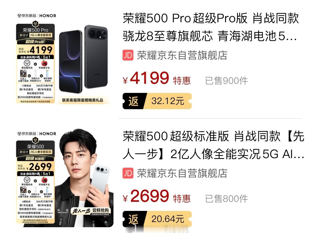 荣耀500系列京东首发销量情况,很标准的线下机:500:800500 Pro:900