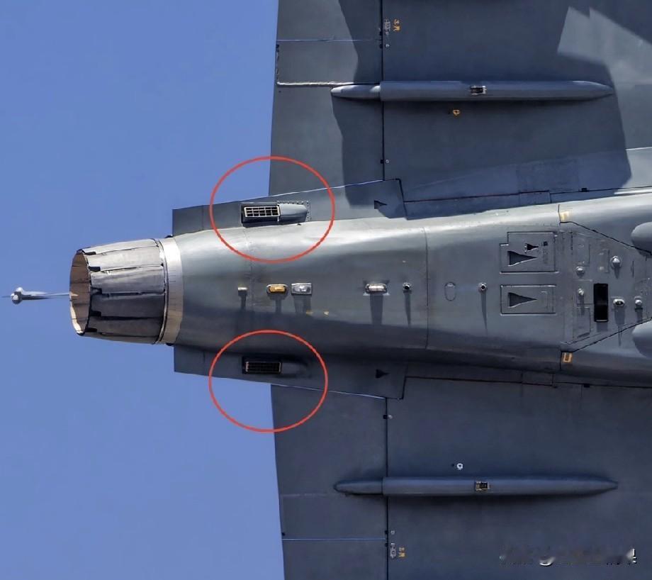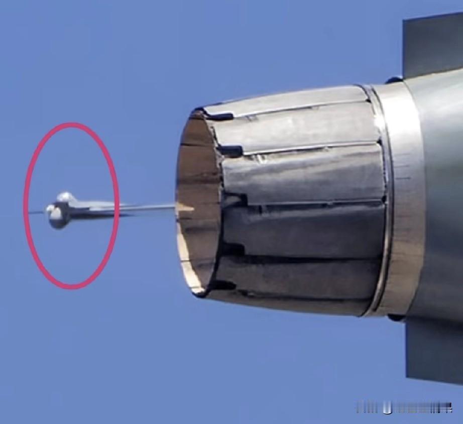 哥,不懂不丢人,可以多问问多查查。这明明就是仰视角度的垂直尾翼尖啊!角度倾斜凸出于尾喷口。别瞎说贻笑大方啊!